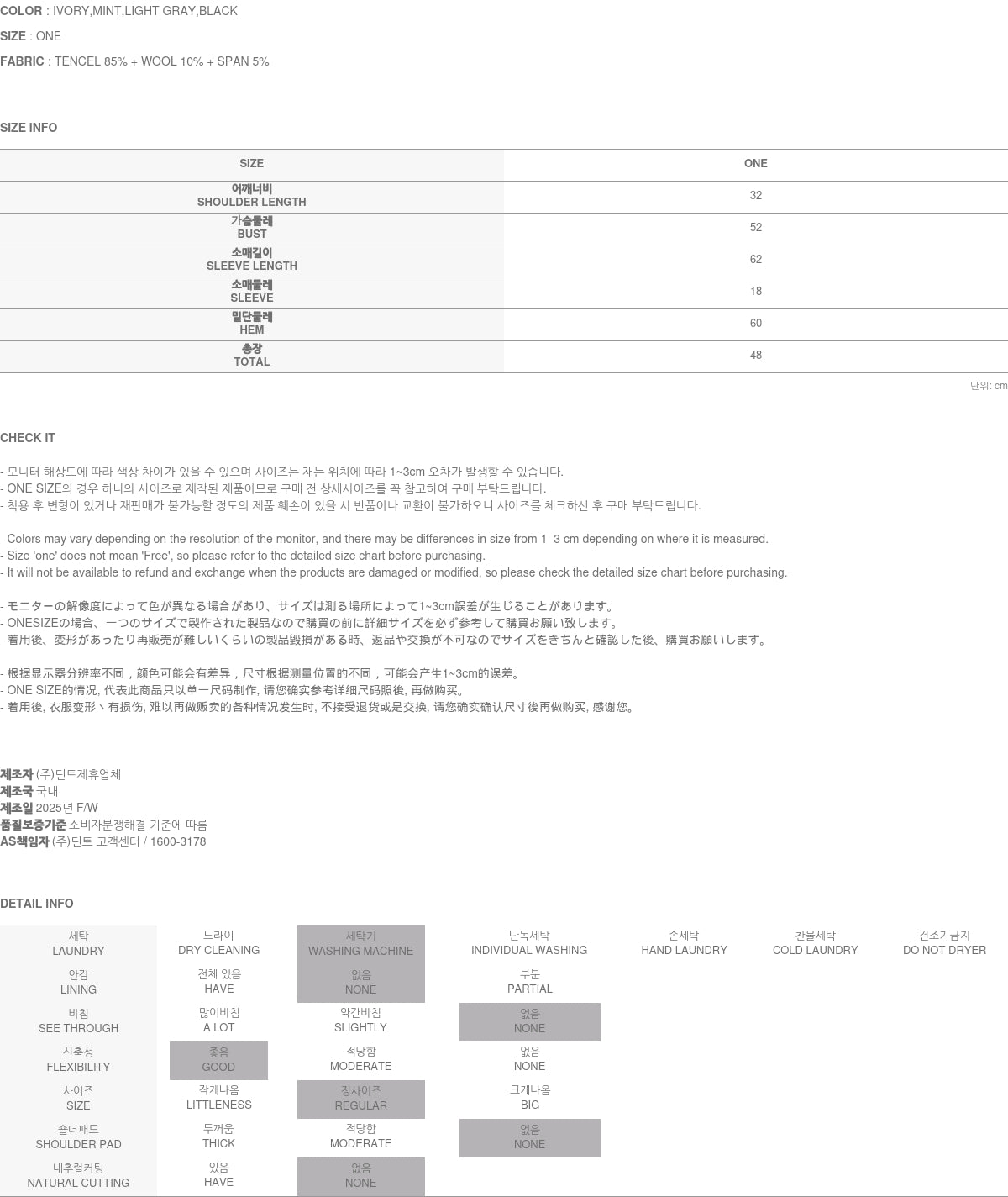 Clothing from DINT Co., Ltd. may become damaged or deformed if machine washed or tumble dried. We strongly recommend following the care instructions provided below.