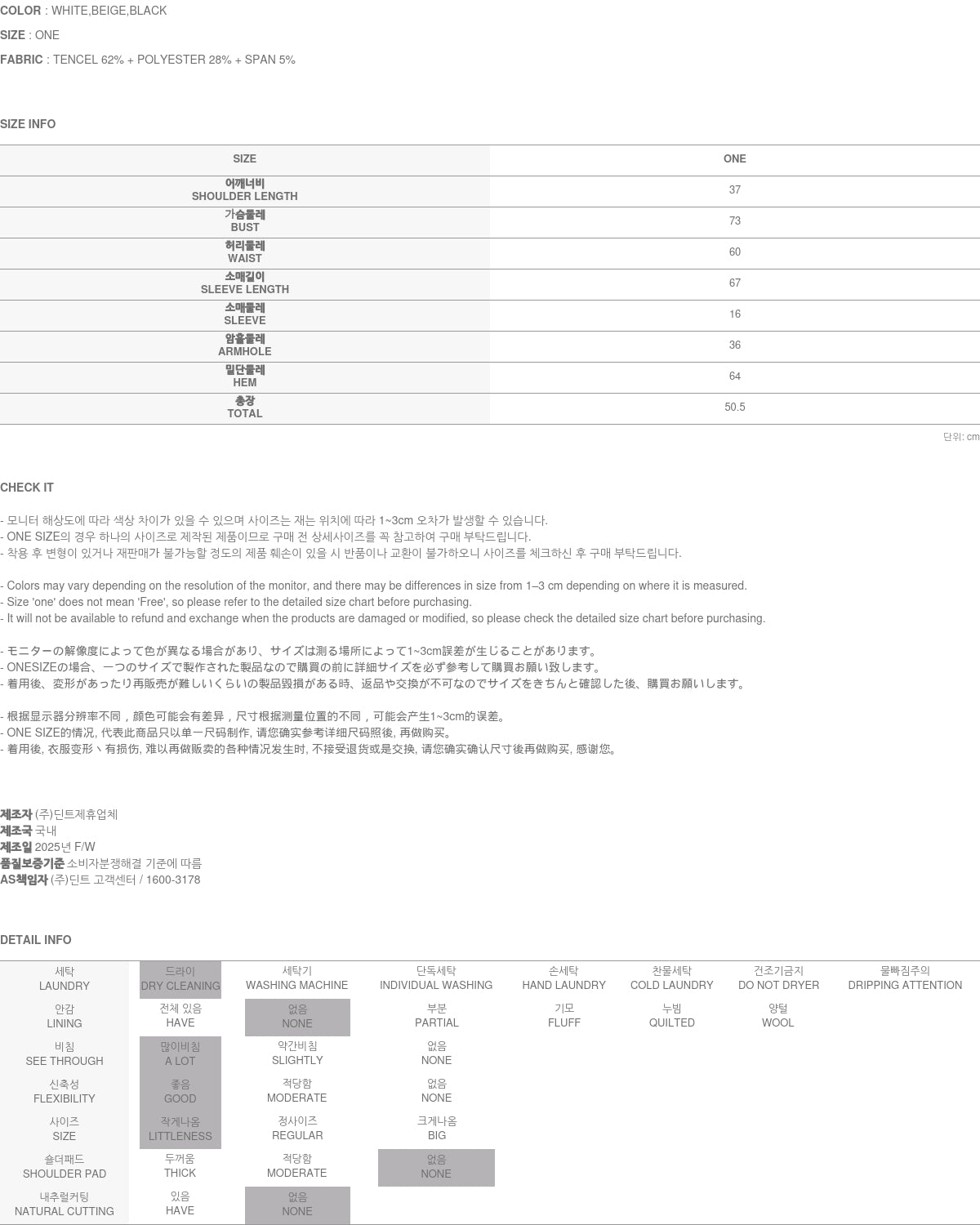 Clothing from DINT Co., Ltd. may become damaged or deformed if machine washed or tumble dried. We strongly recommend following the care instructions provided below.