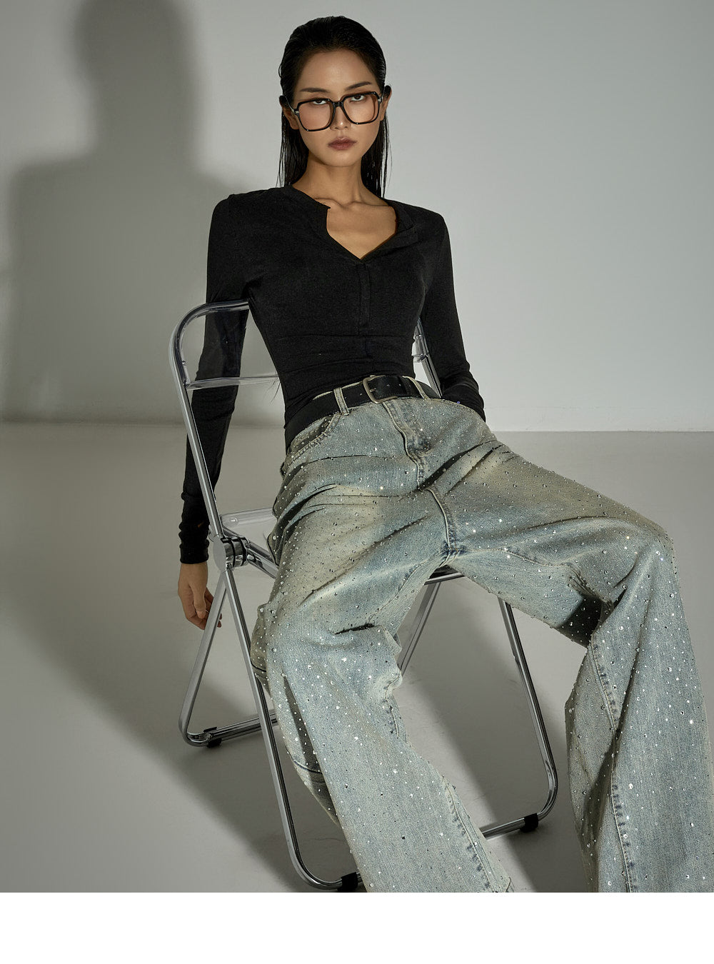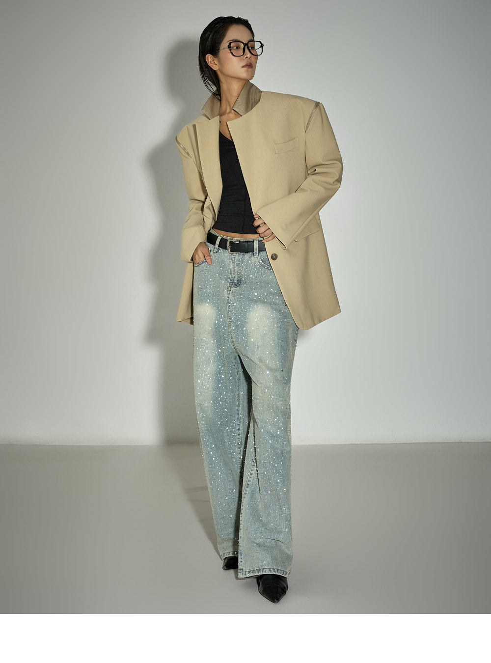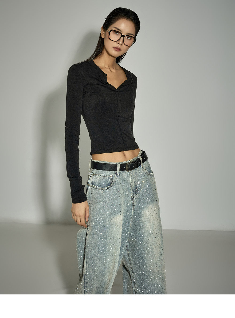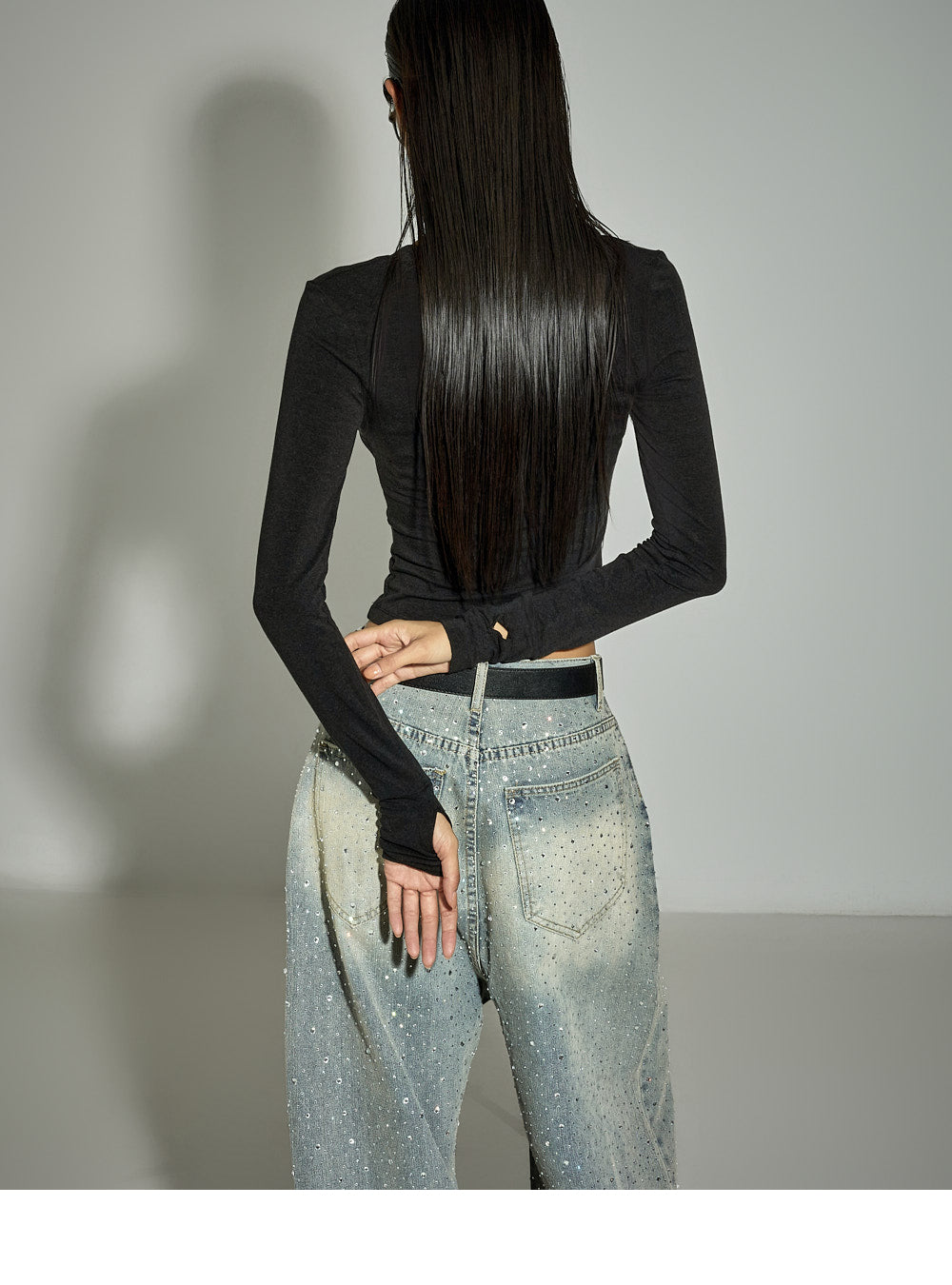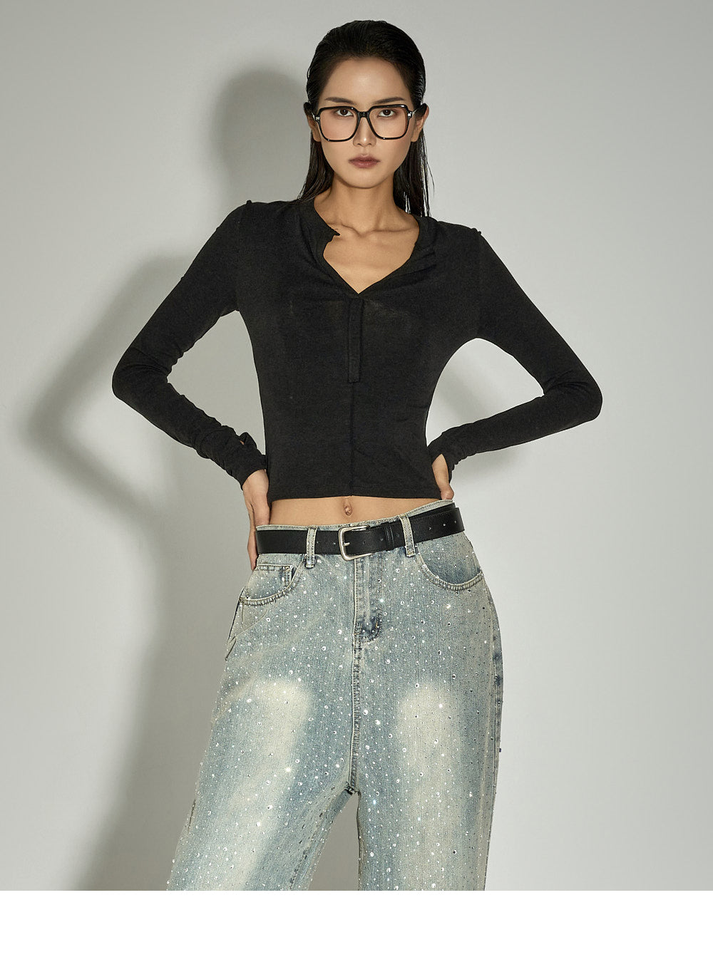The slim fit and cropped length accentuate the body line,