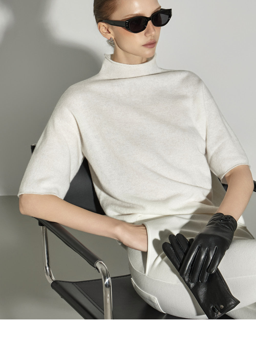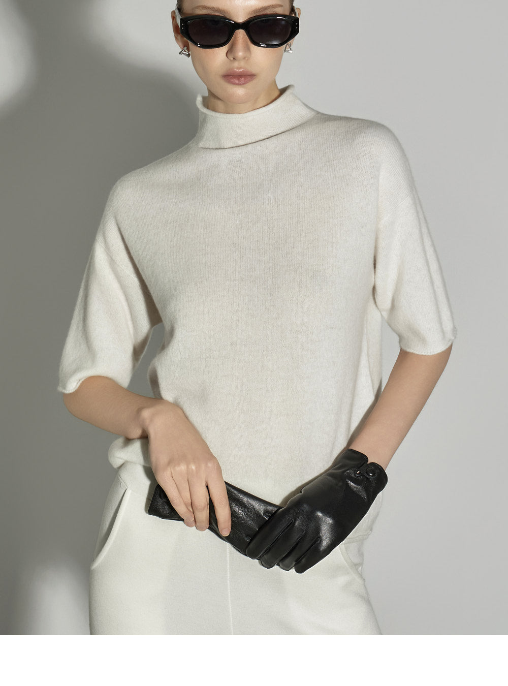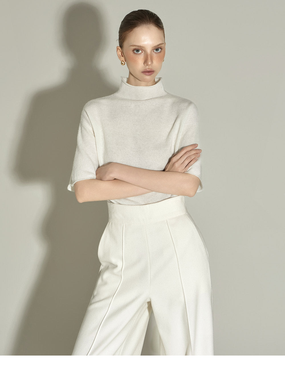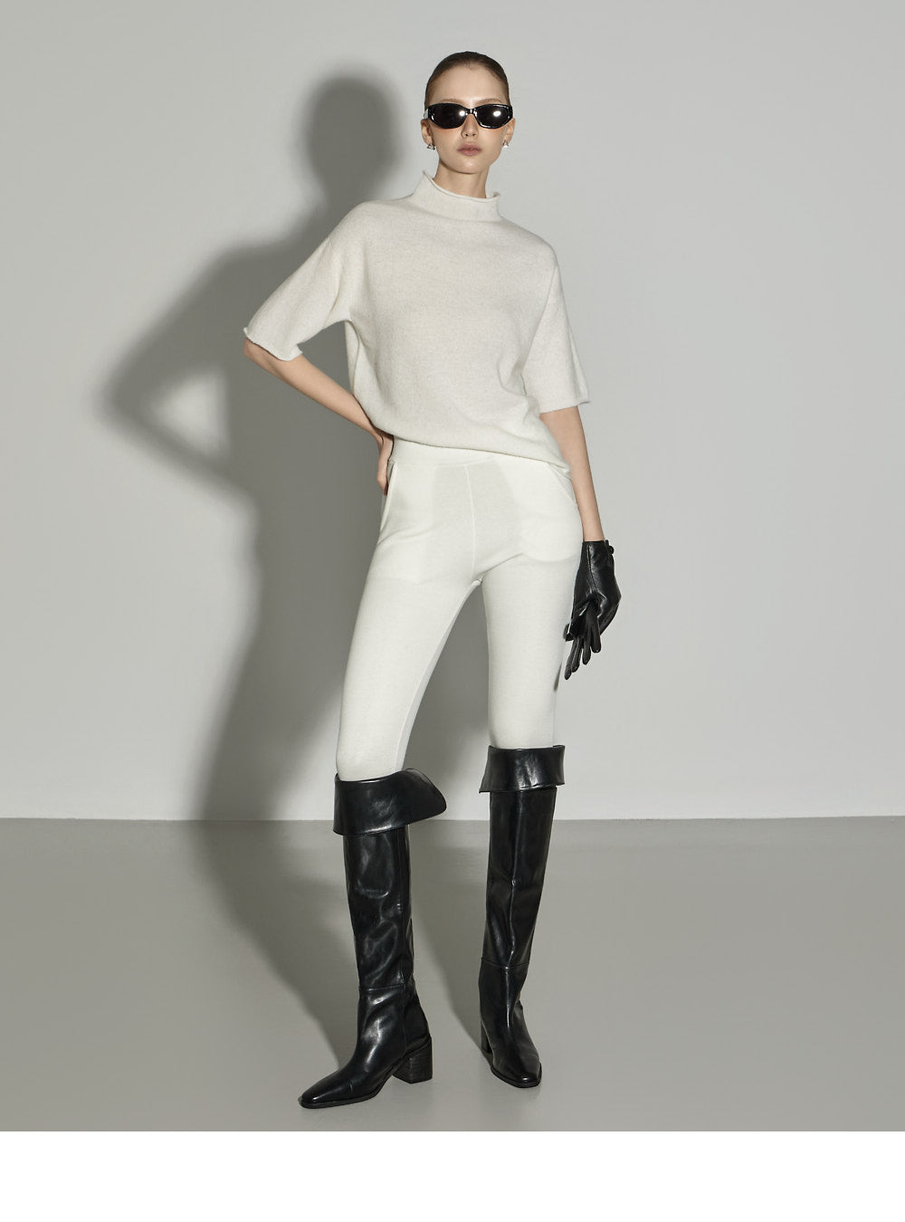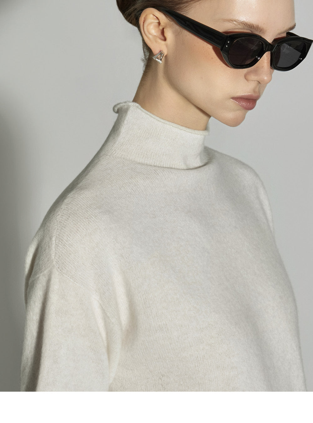 The half-neck design creates a silhouette that naturally hugs the neckline without feeling stuffy.