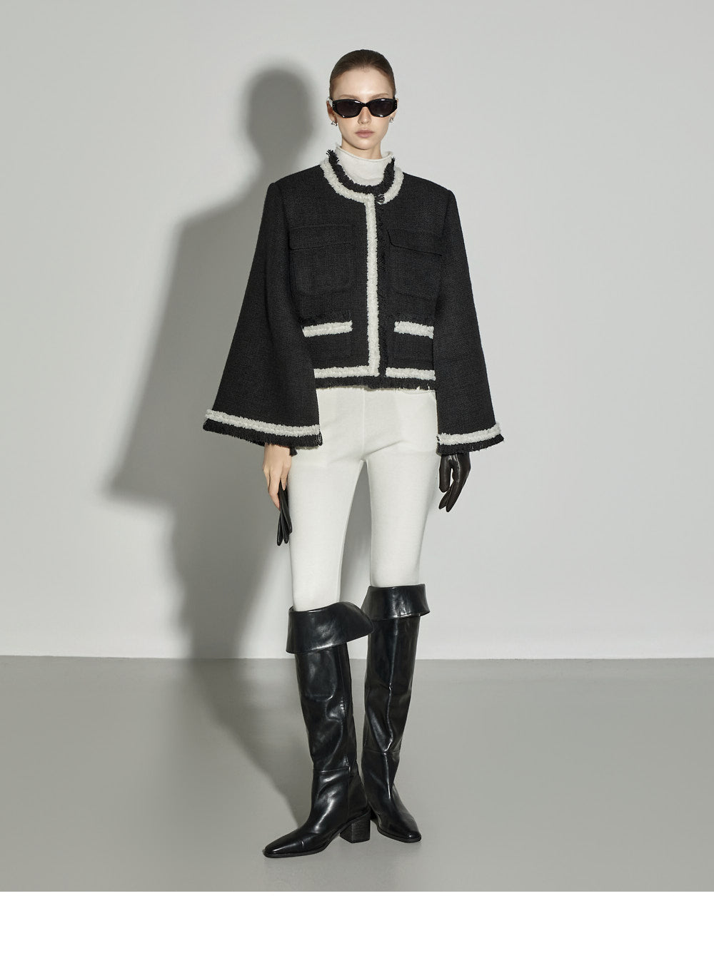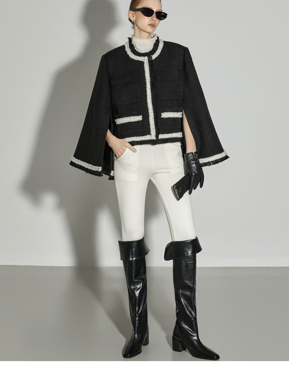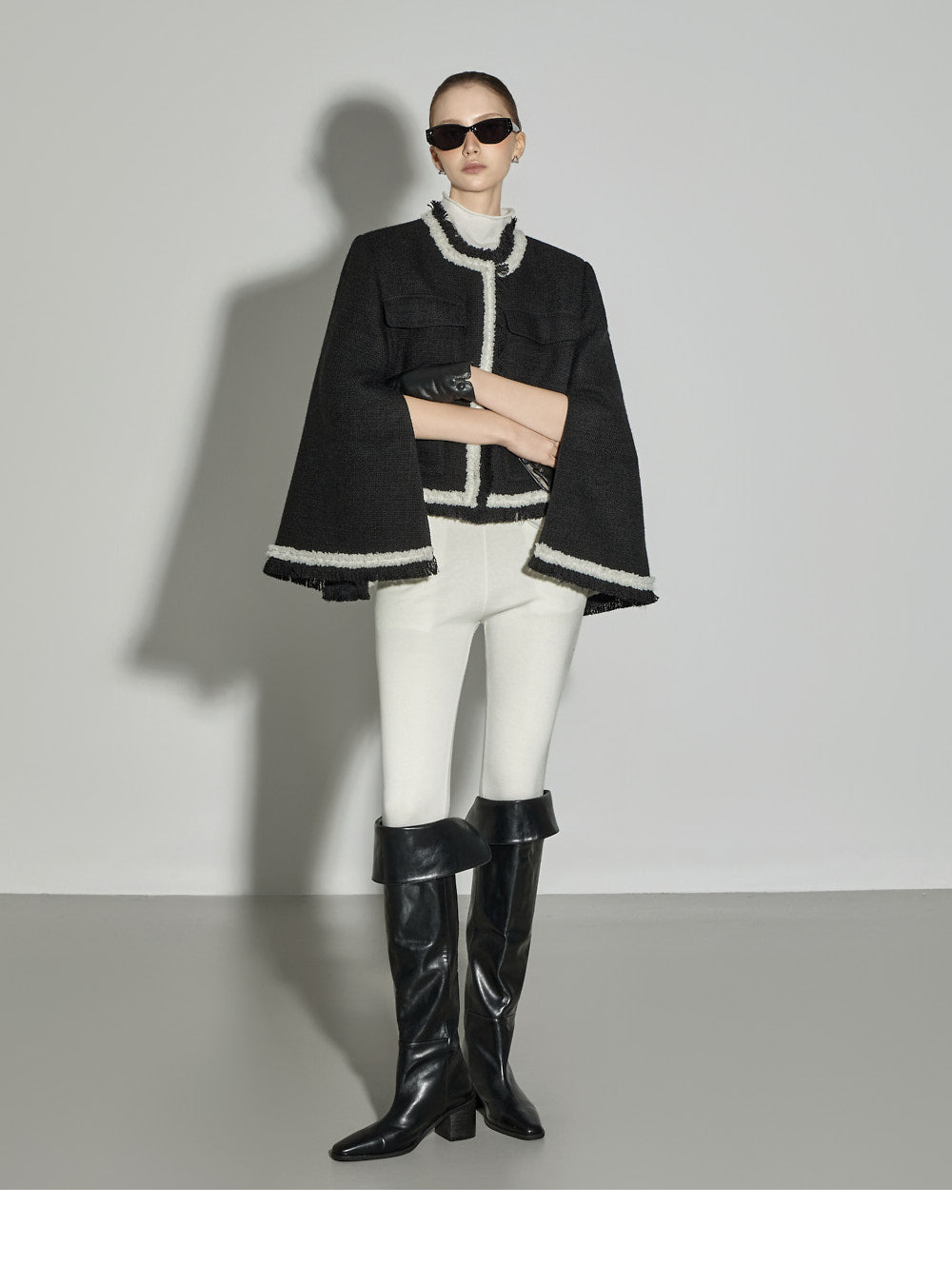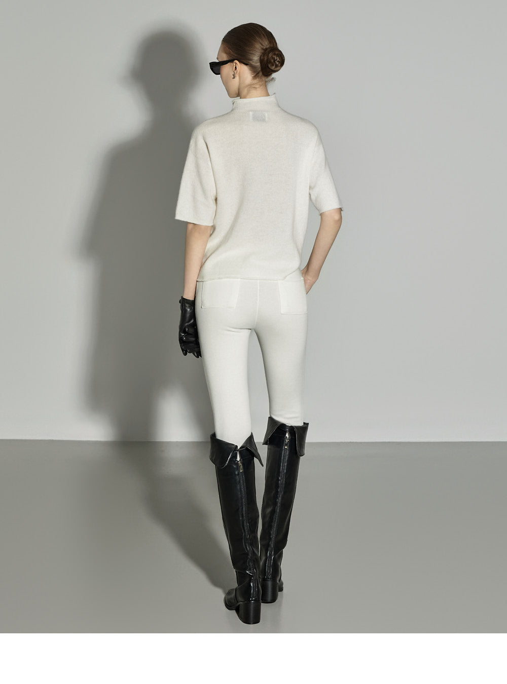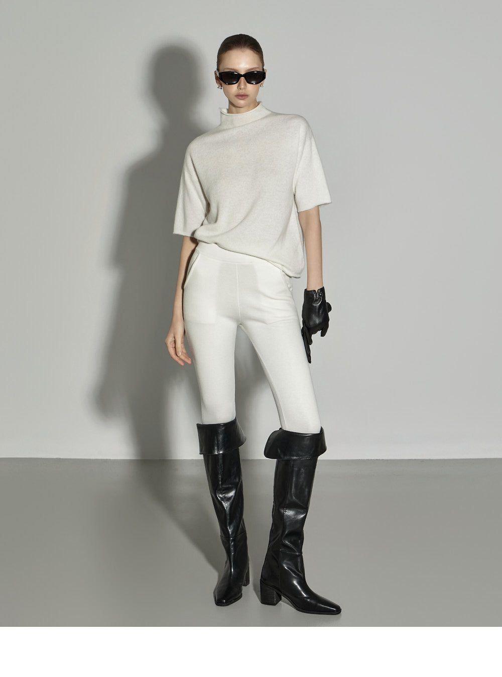 The half-neck design creates a silhouette that naturally hugs the neckline without feeling stuffy.