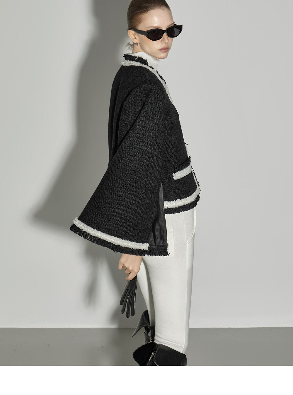 The loose fit pairs well with a variety of items, from slim pants to wide-leg bottoms,
