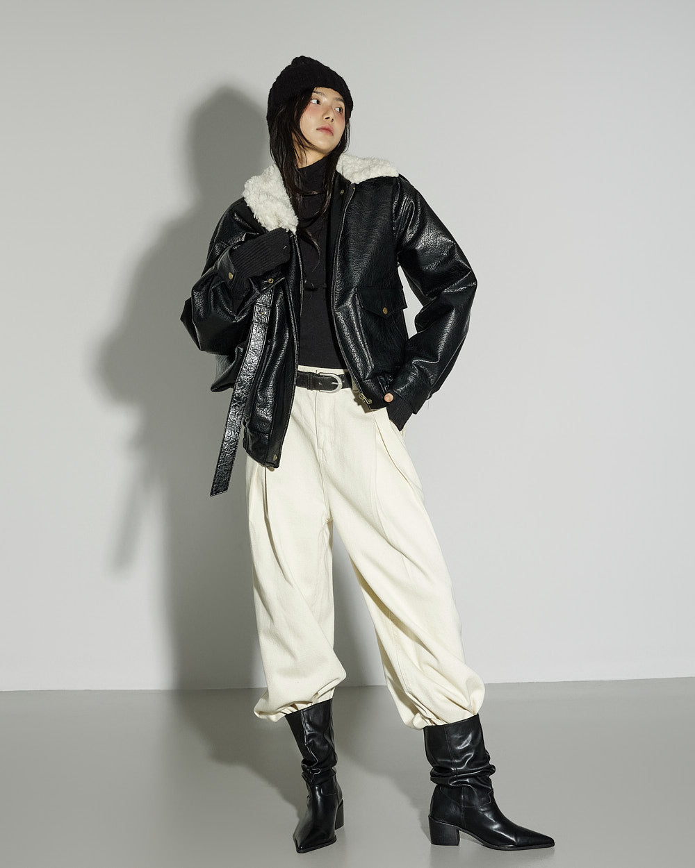 Denim (jeans, coated jeans) and other dark-dyed garments may experience color fading or transfer. Please take extra care before the first wash and while wearing them.