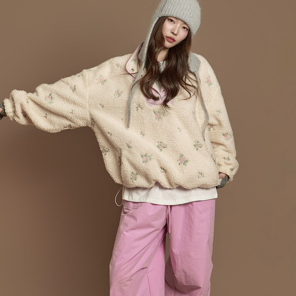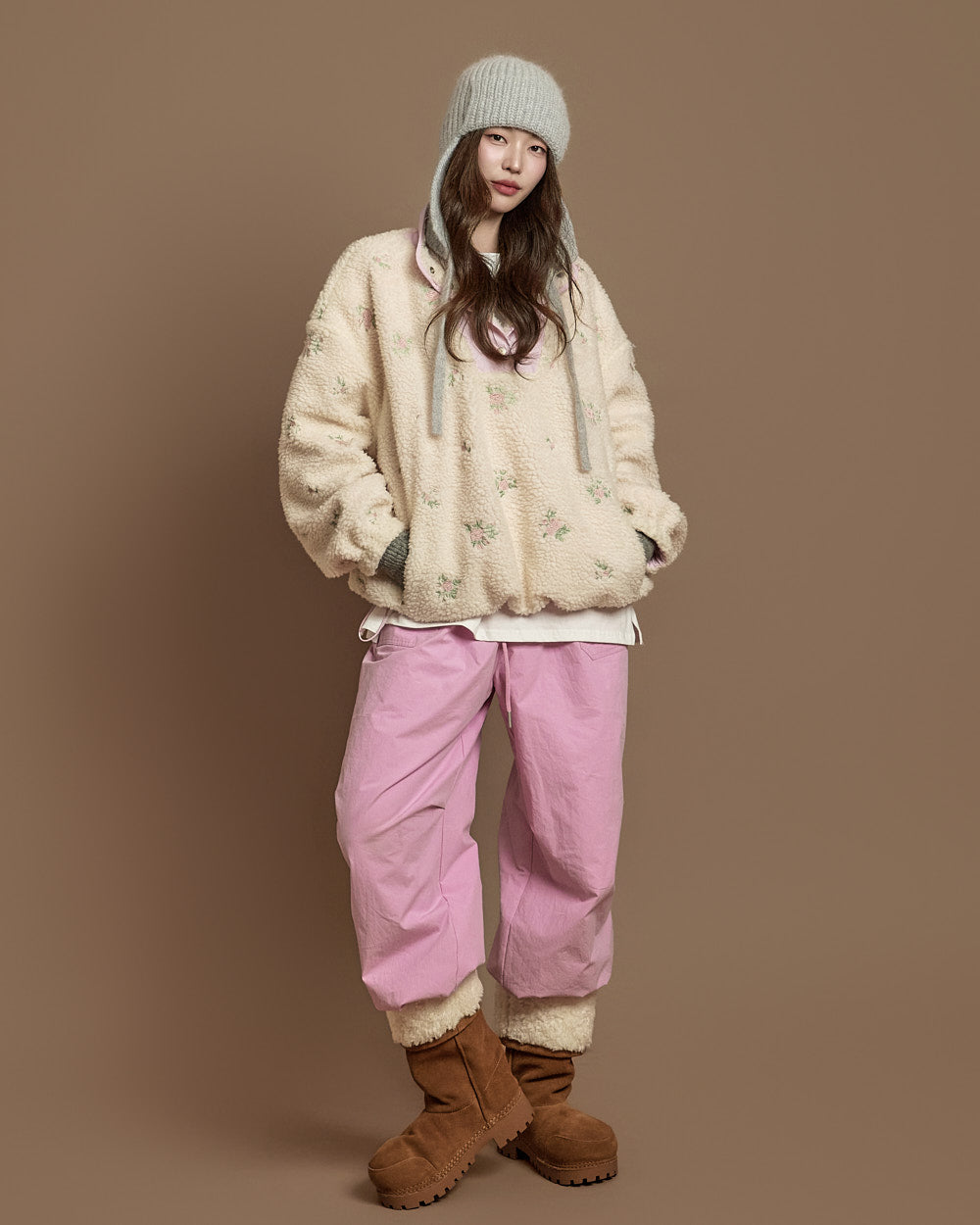 The front snap button half-zip closure and drawstring hem allow for an adjustable fit,