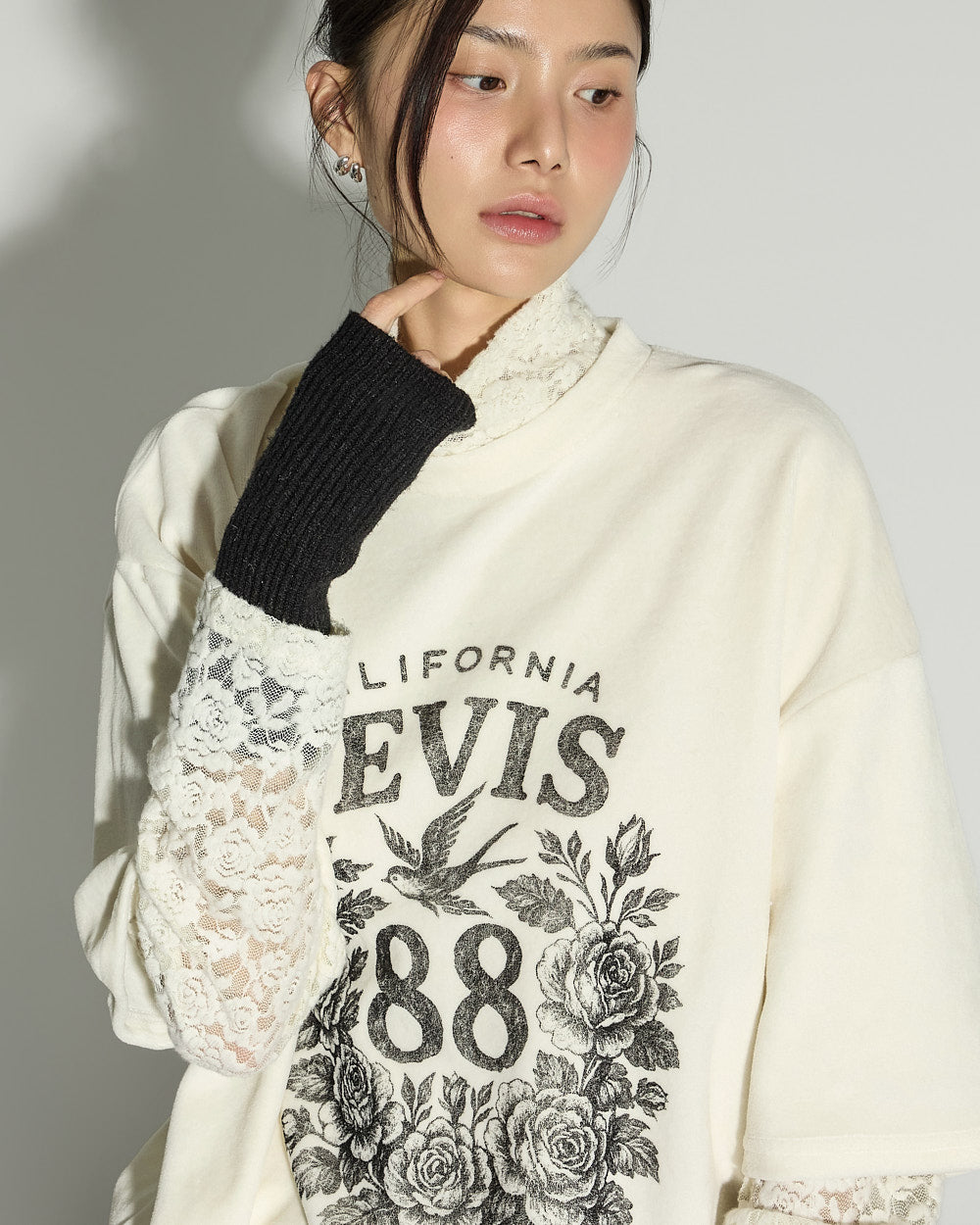 A unique layered printed top with a distinctive mood.