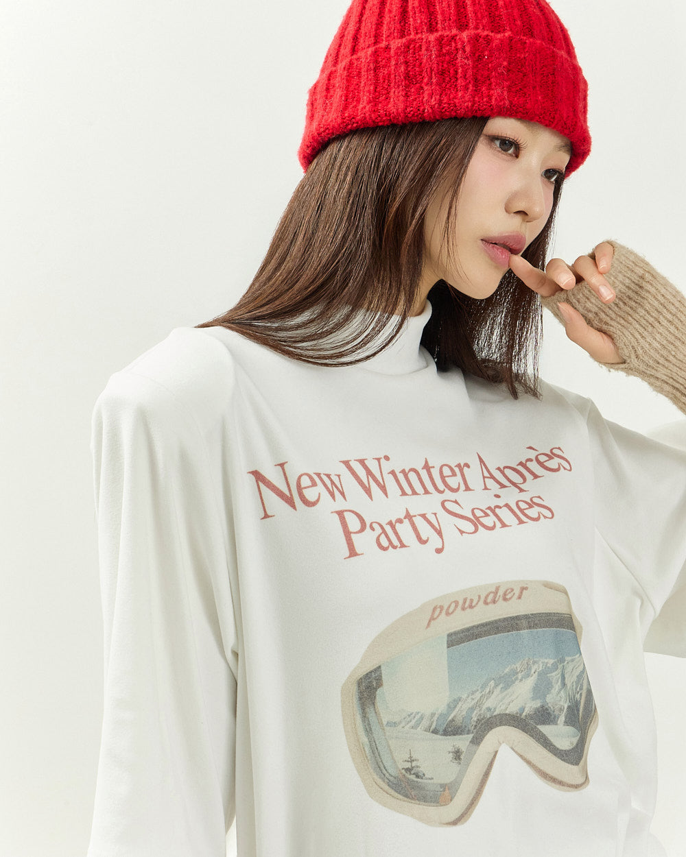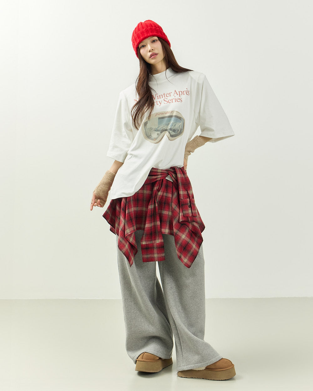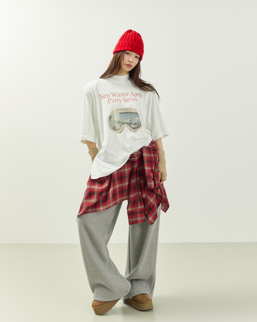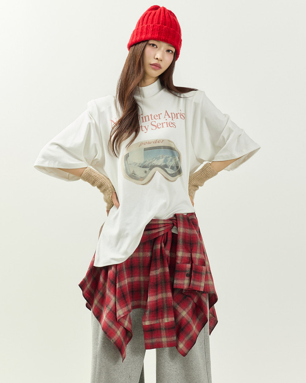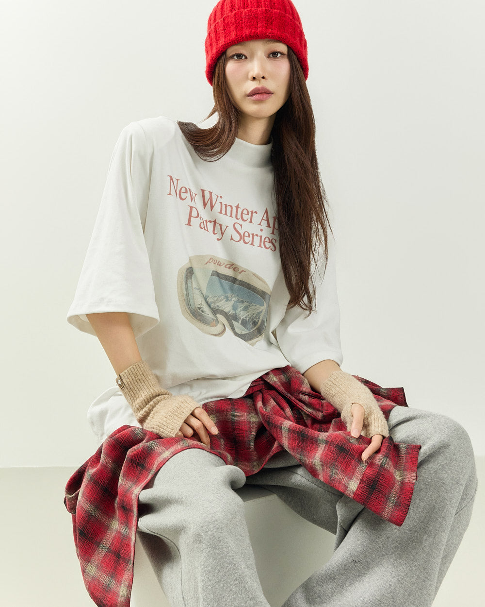The semi-high neck design and oversized silhouette create a relaxed fit,