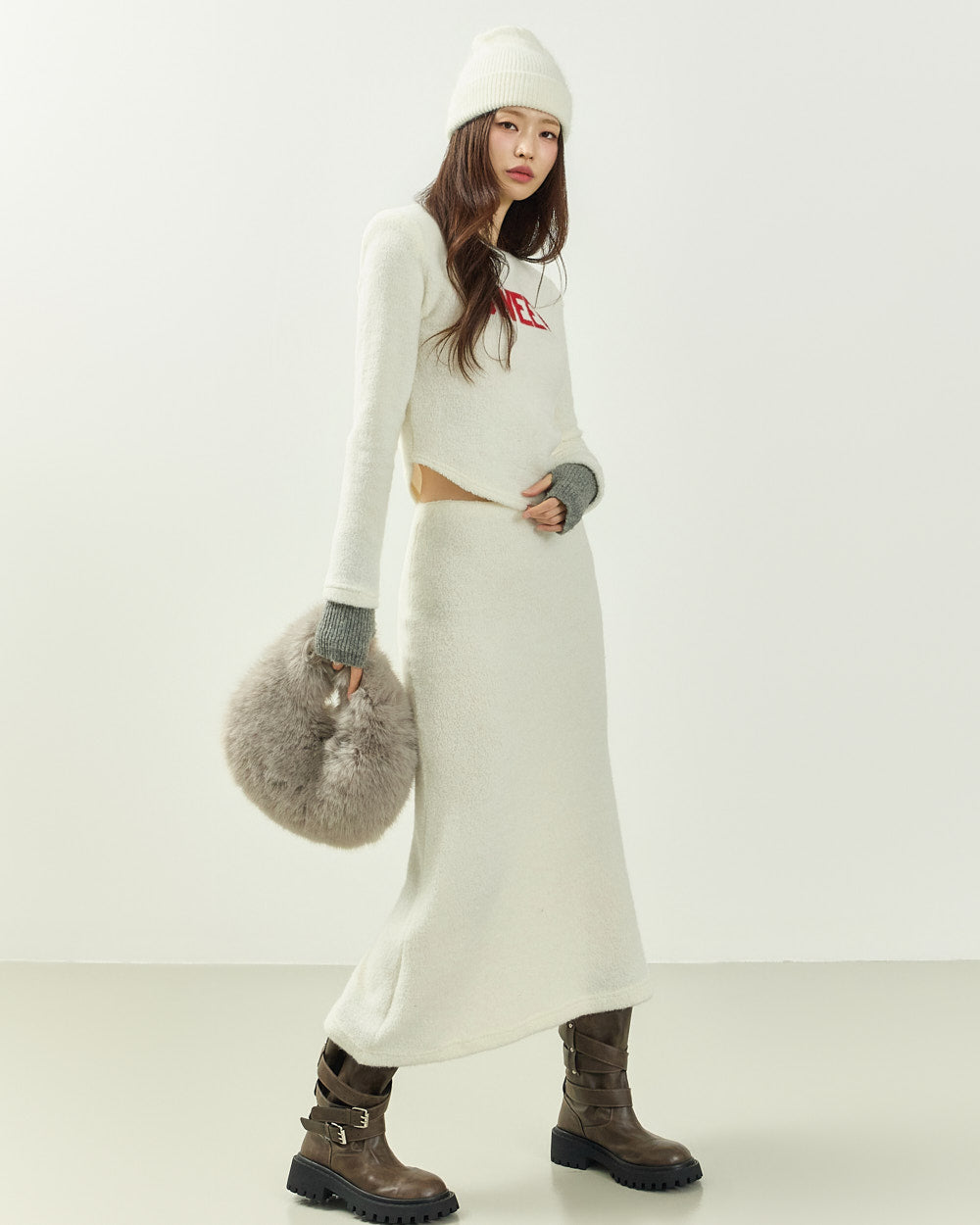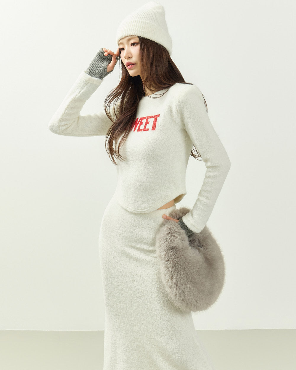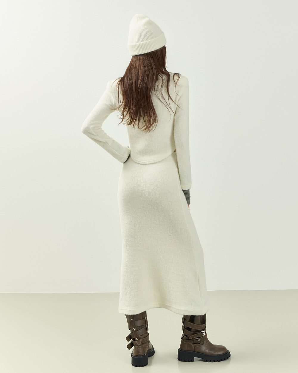 The 171cm model is wearing size ONE in IVORY.