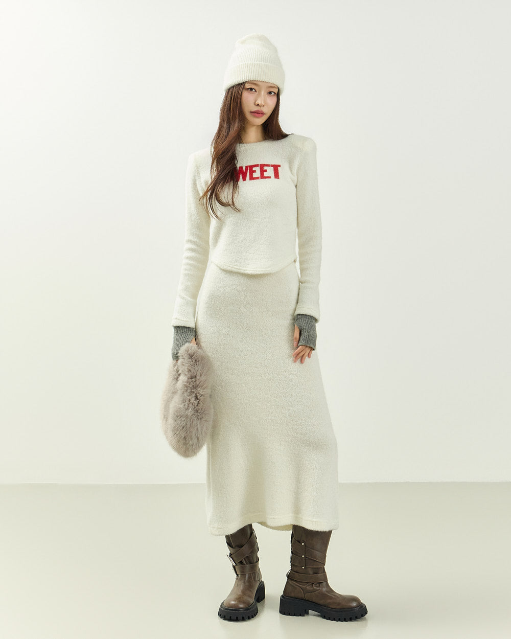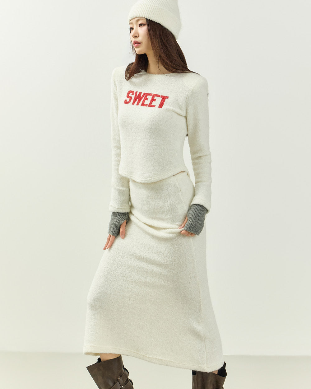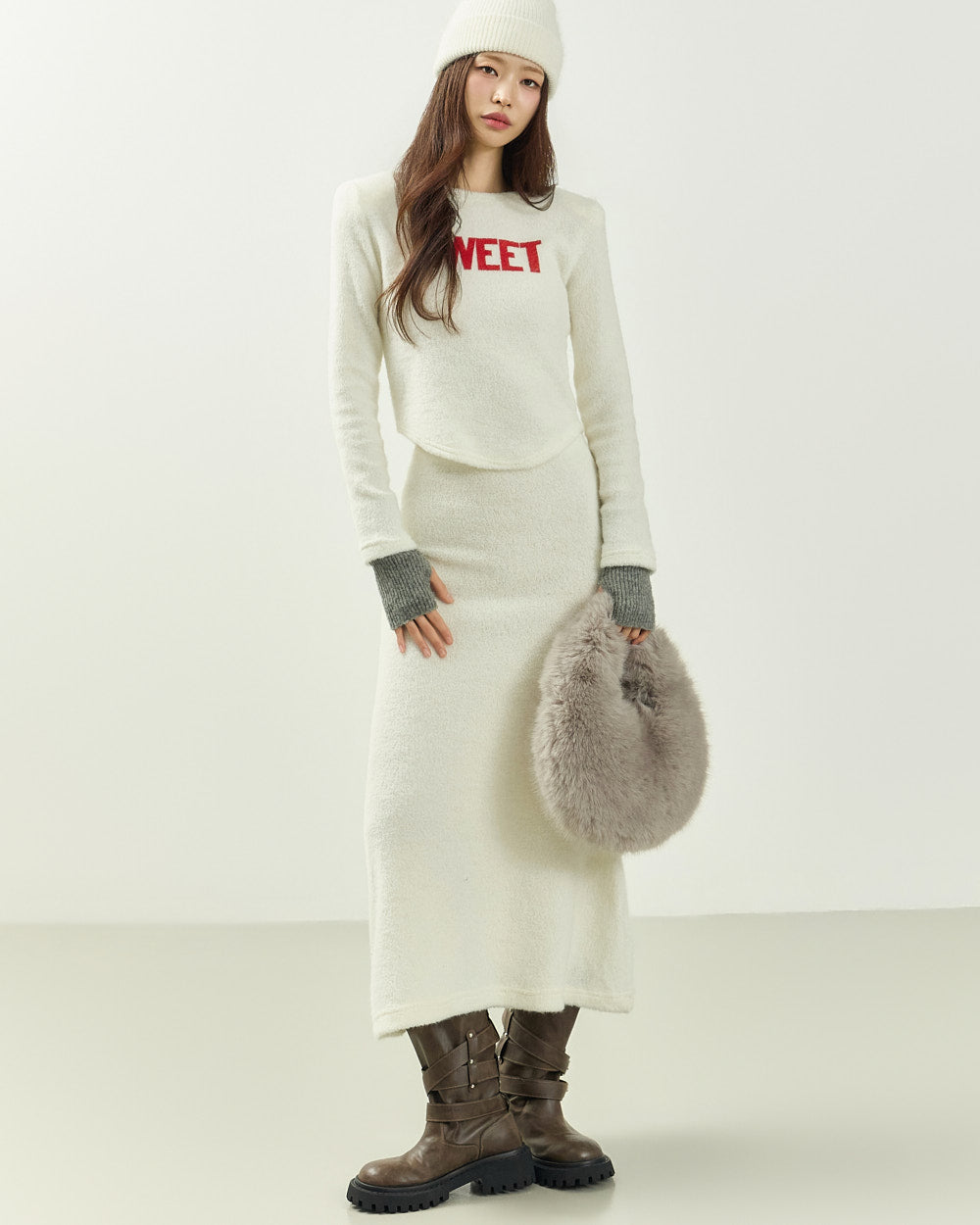 The 171cm model is wearing size ONE in IVORY.