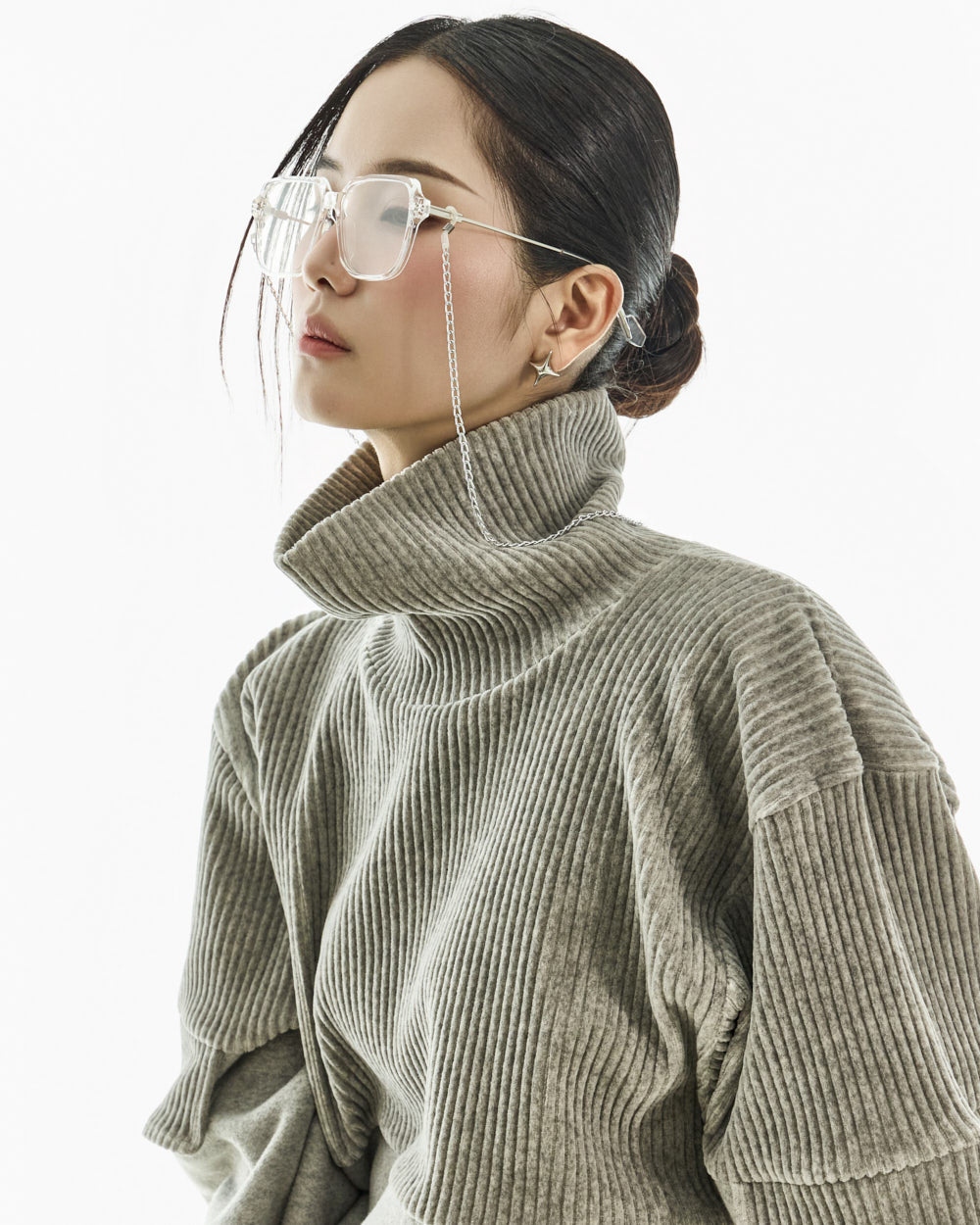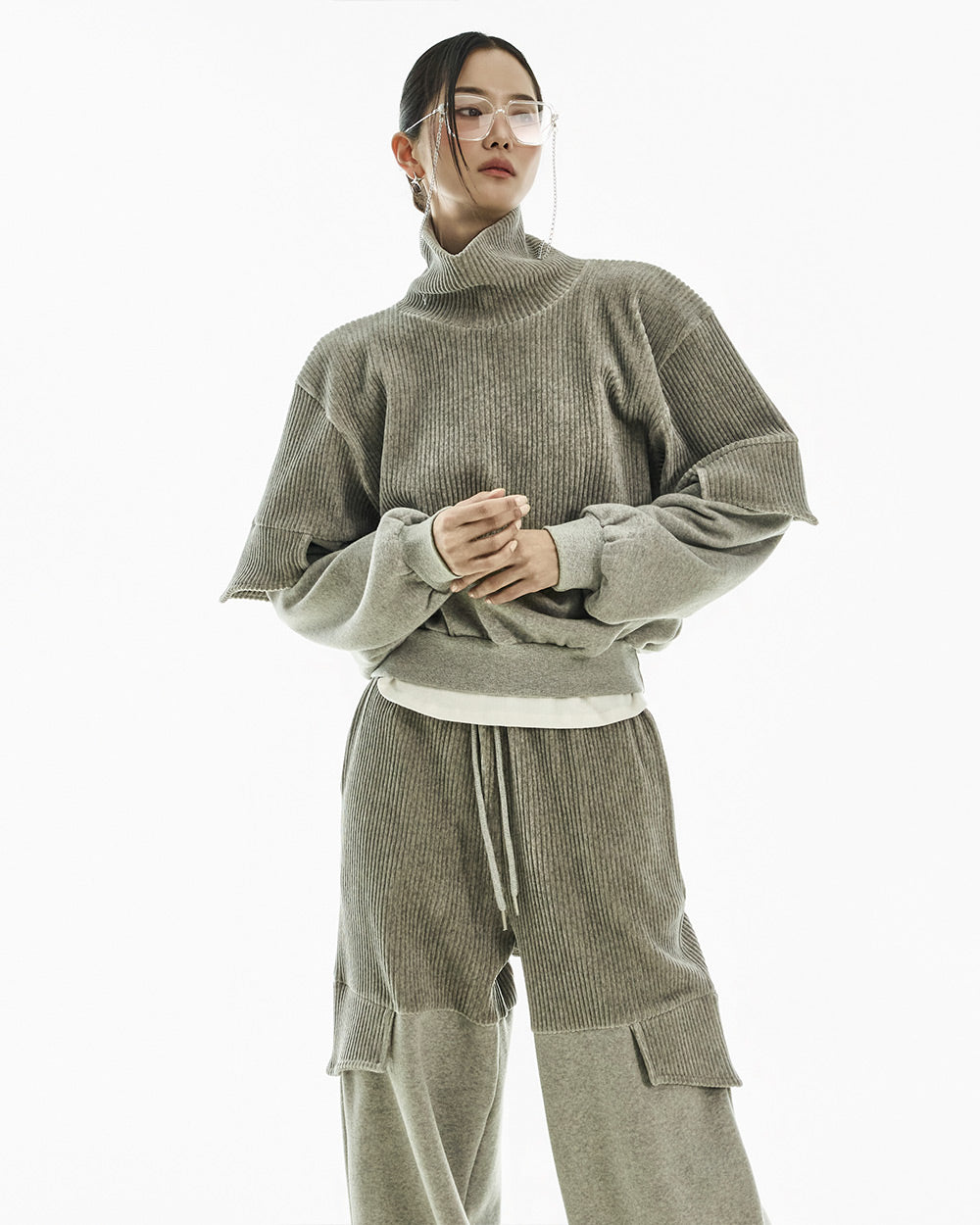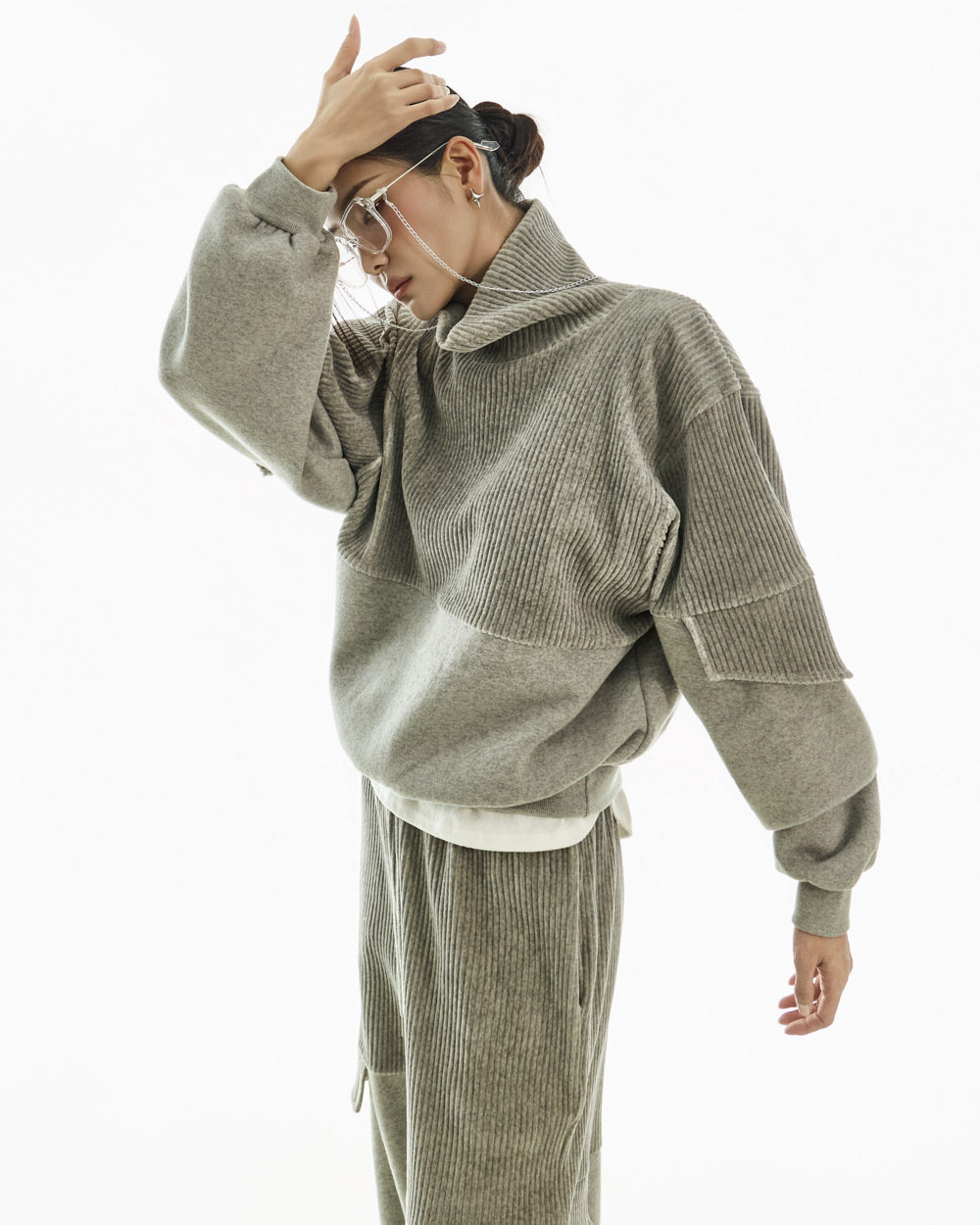 With a loose fit and high neck,