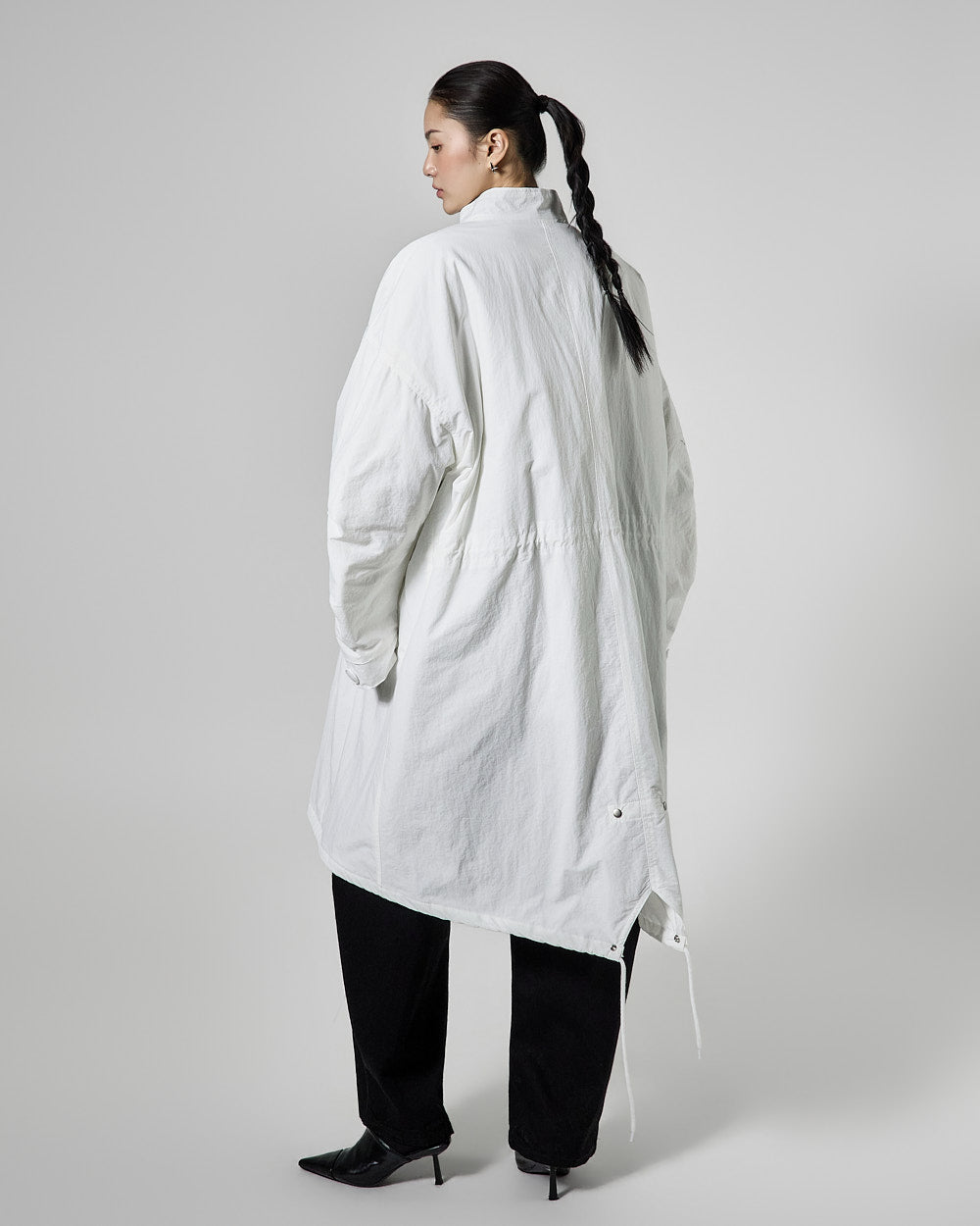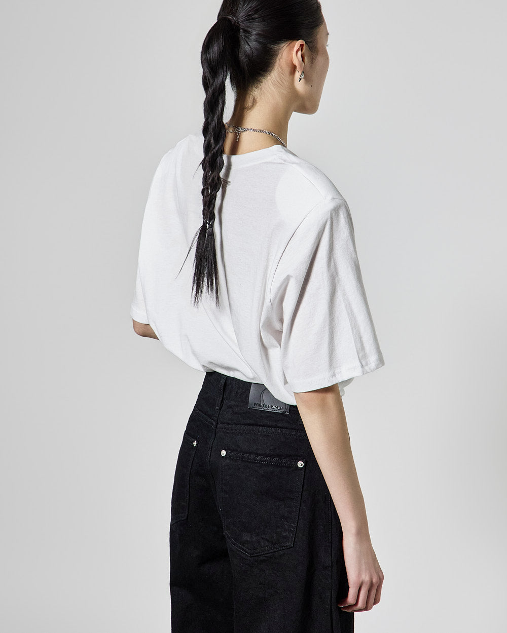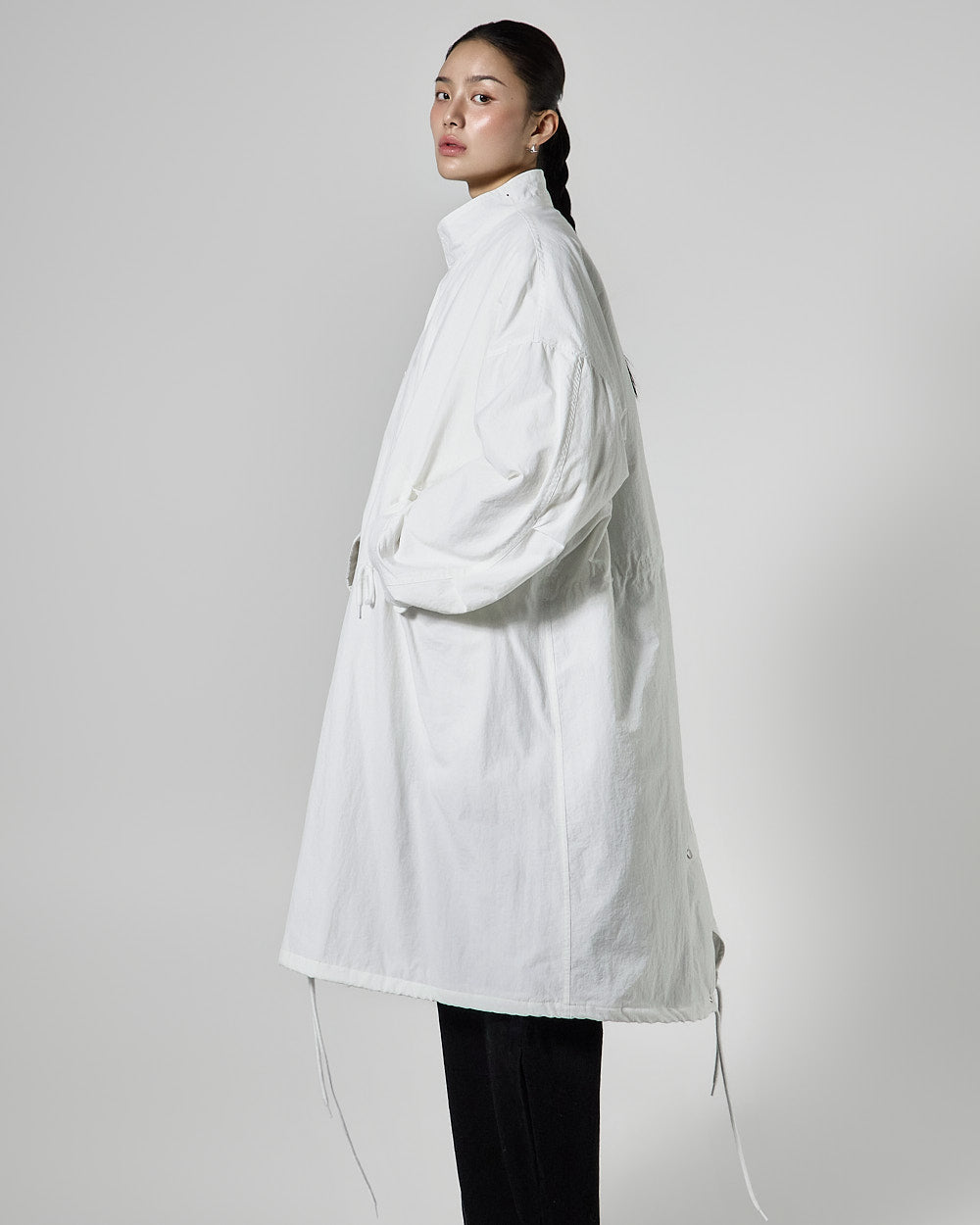 The 171cm model is wearing size ONE in white.