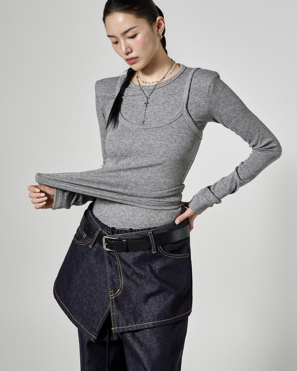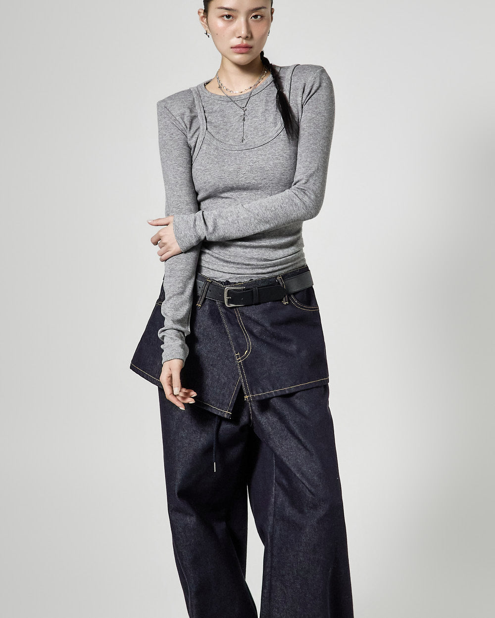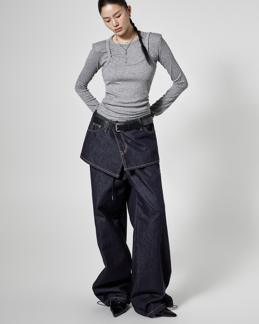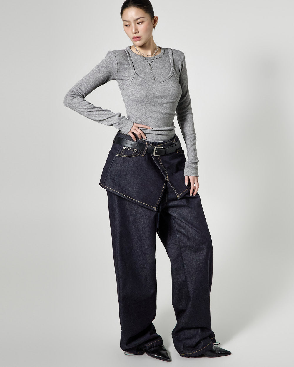 Denim (jeans, coated jeans) and other dark-dyed garments may experience color fading or transfer. Please take extra care before the first wash and while wearing them.