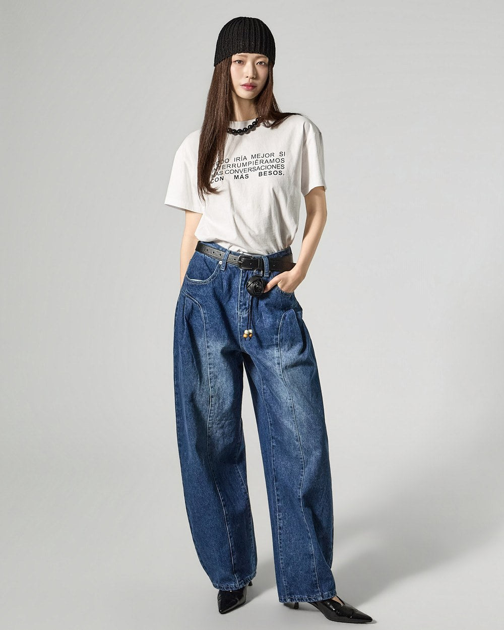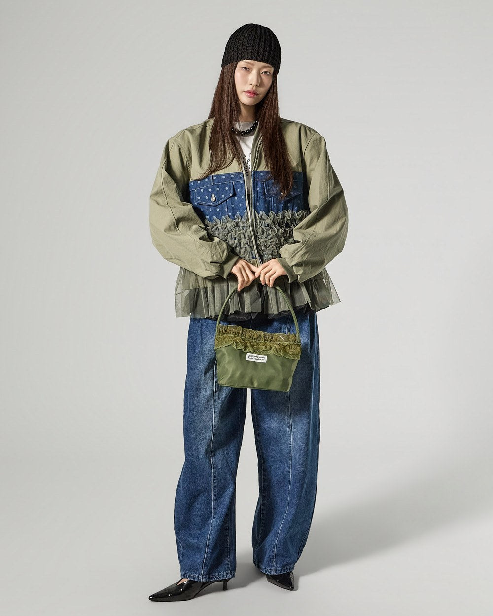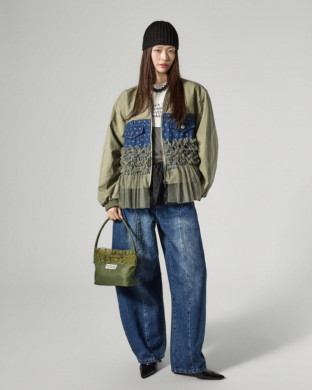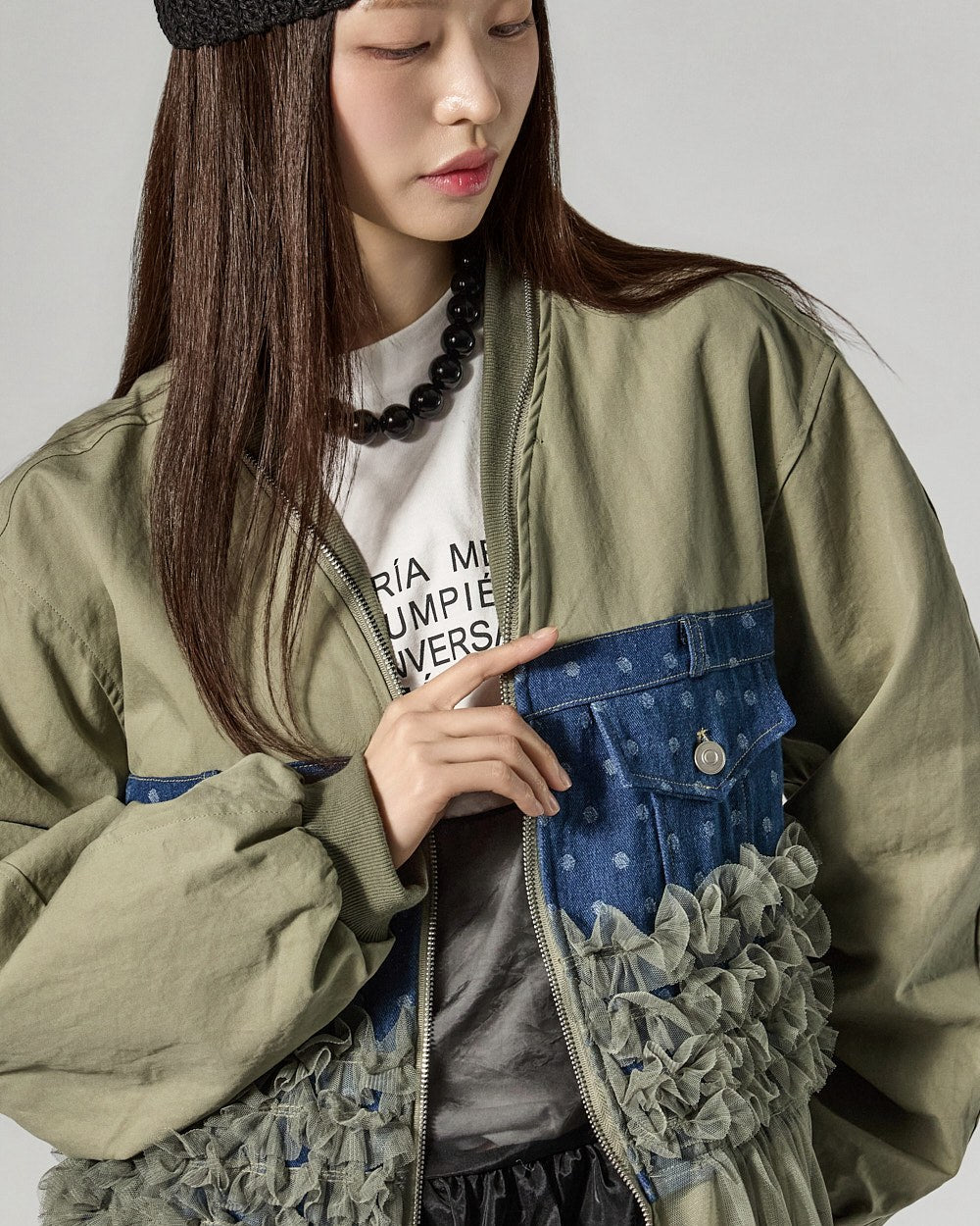 Denim (jeans, coated jeans) and other dark-dyed garments may experience color fading or transfer. Please take extra care before the first wash and while wearing them.