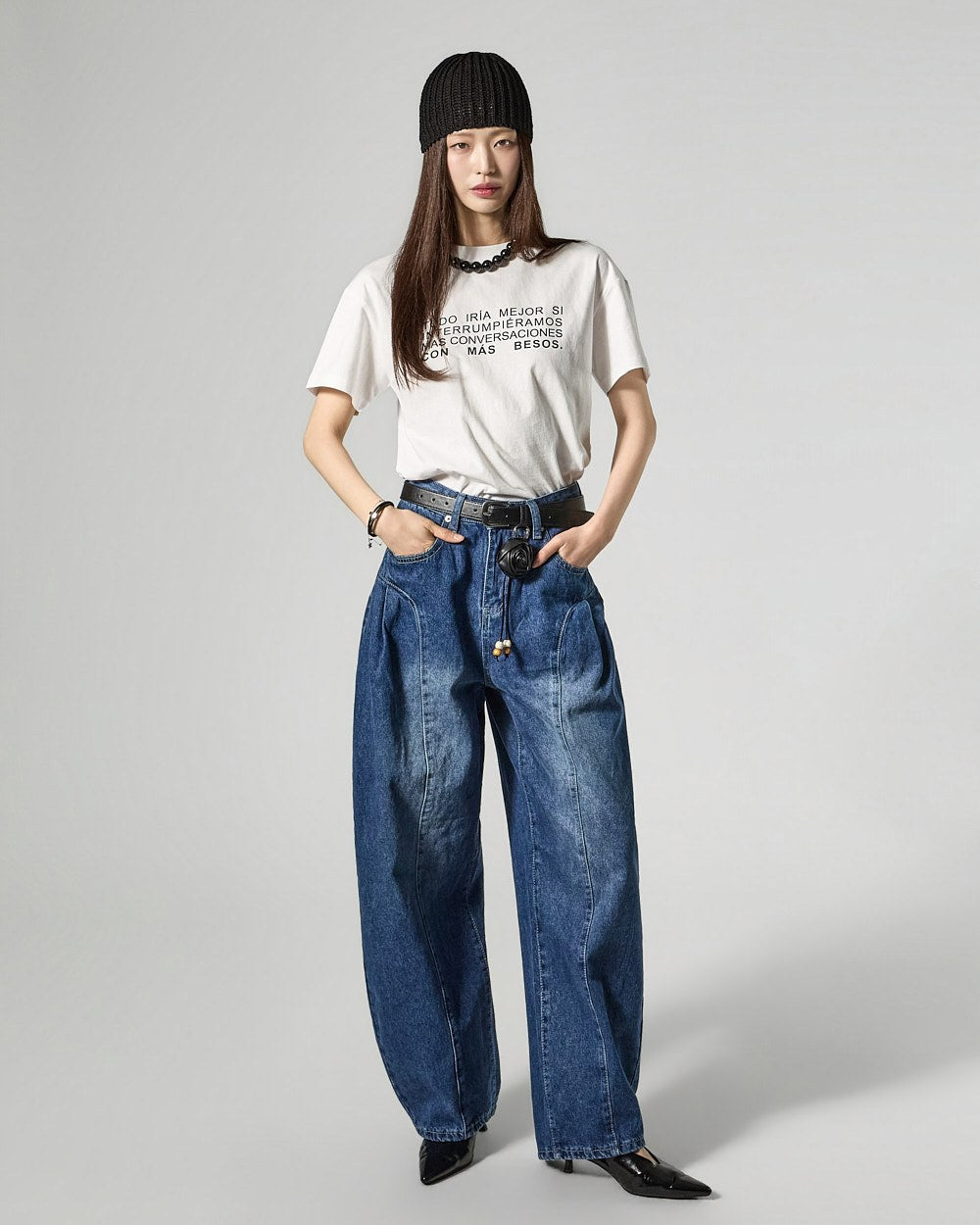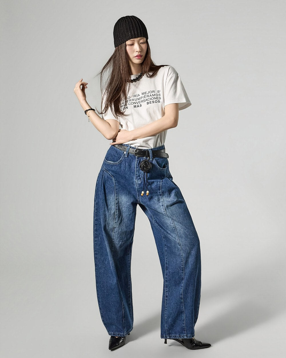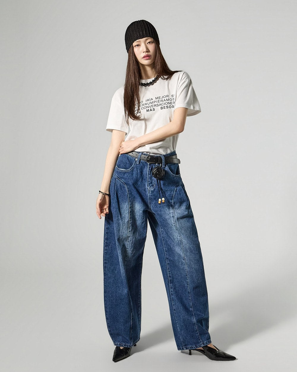 Denim (jeans, coated jeans) and other dark-dyed garments may experience color fading or transfer. Please take extra care before the first wash and while wearing them.