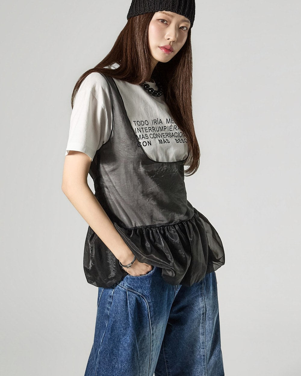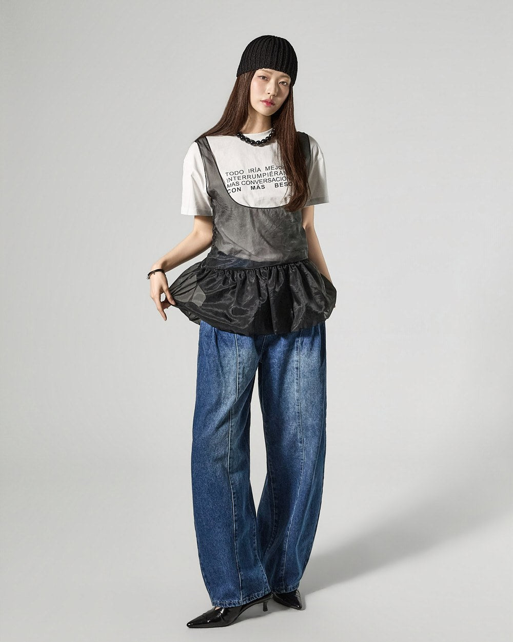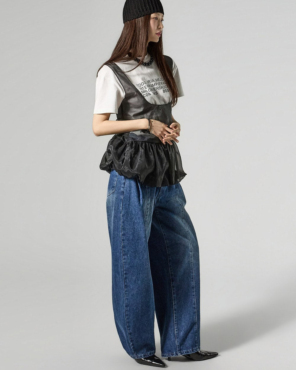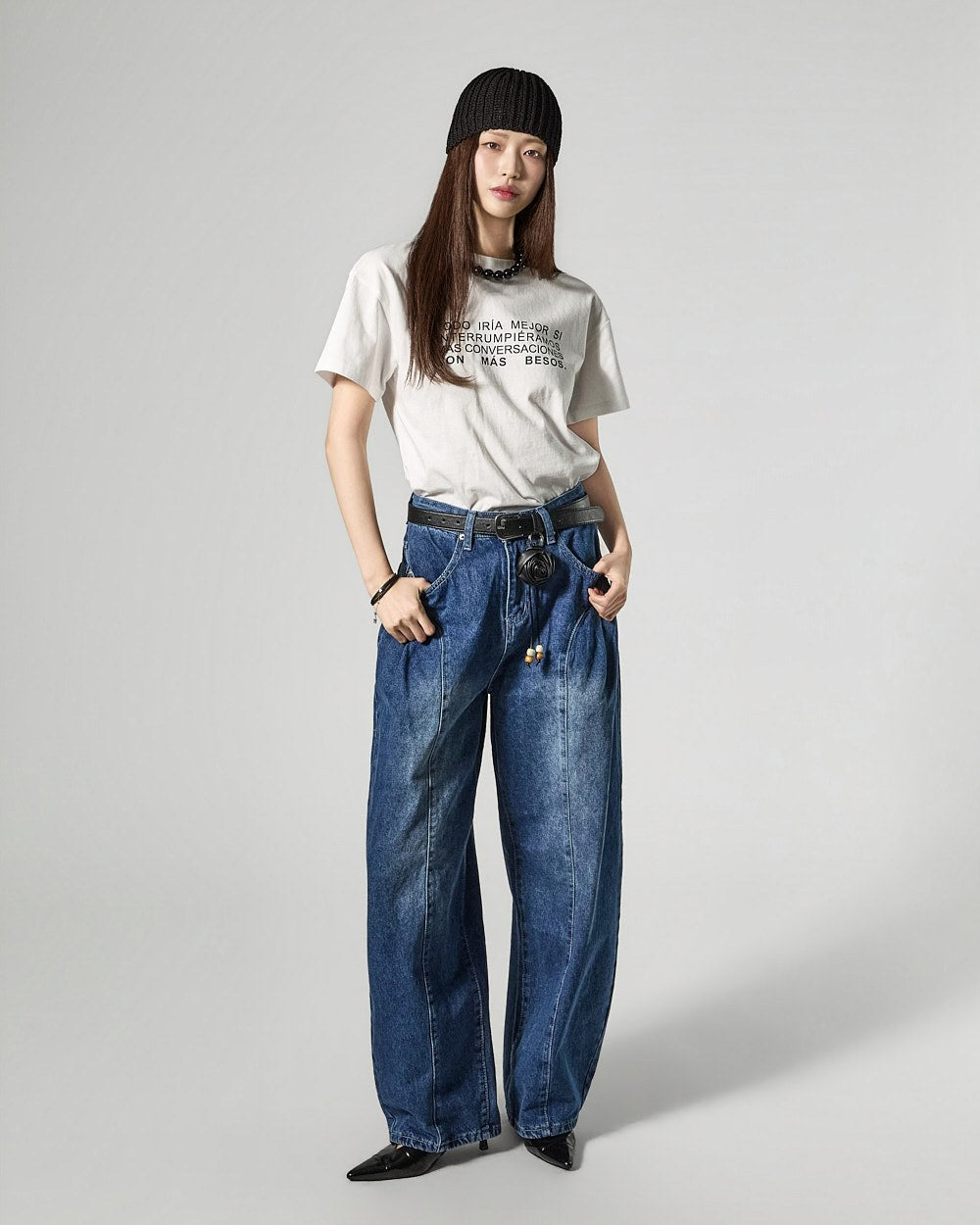Denim (jeans, coated jeans) and other dark-dyed garments may experience color fading or transfer. Please take extra care before the first wash and while wearing them.