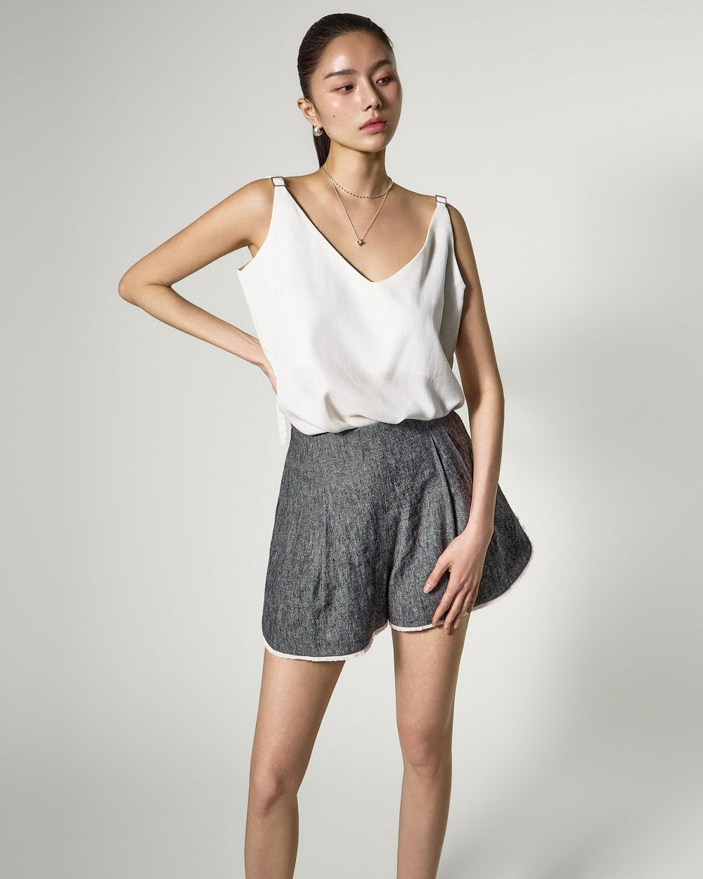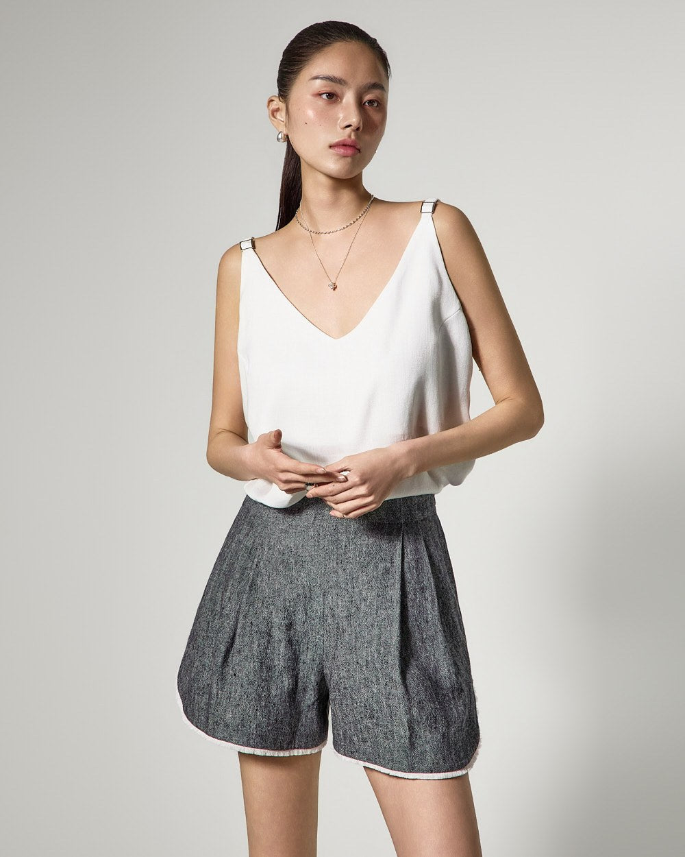 The V-neckline creates a refreshing look around the face,