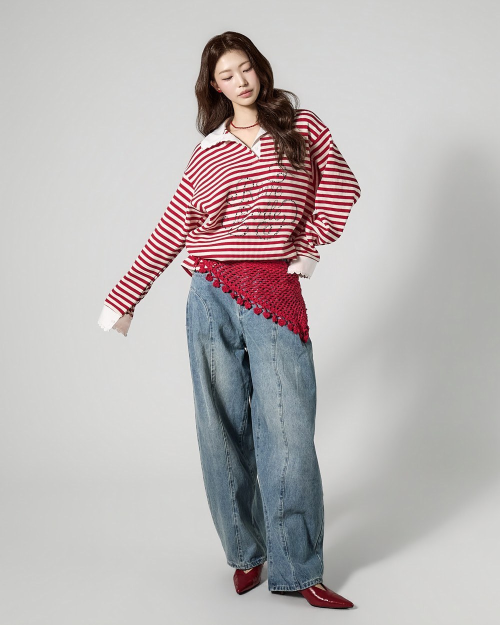 Denim (jeans, coated jeans) and other dark-dyed garments may experience color fading or transfer. Please take extra care before the first wash and while wearing them.