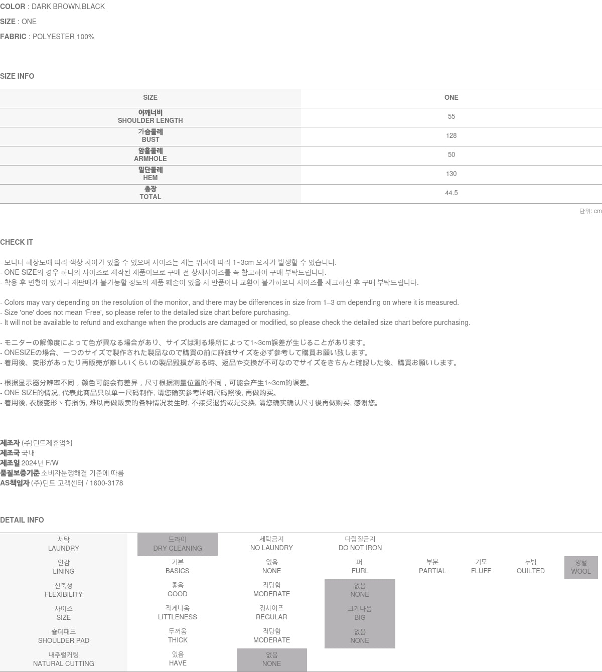 Clothing from DINT Co., Ltd. may become damaged or deformed if machine washed or tumble dried. We strongly recommend following the care instructions provided below.