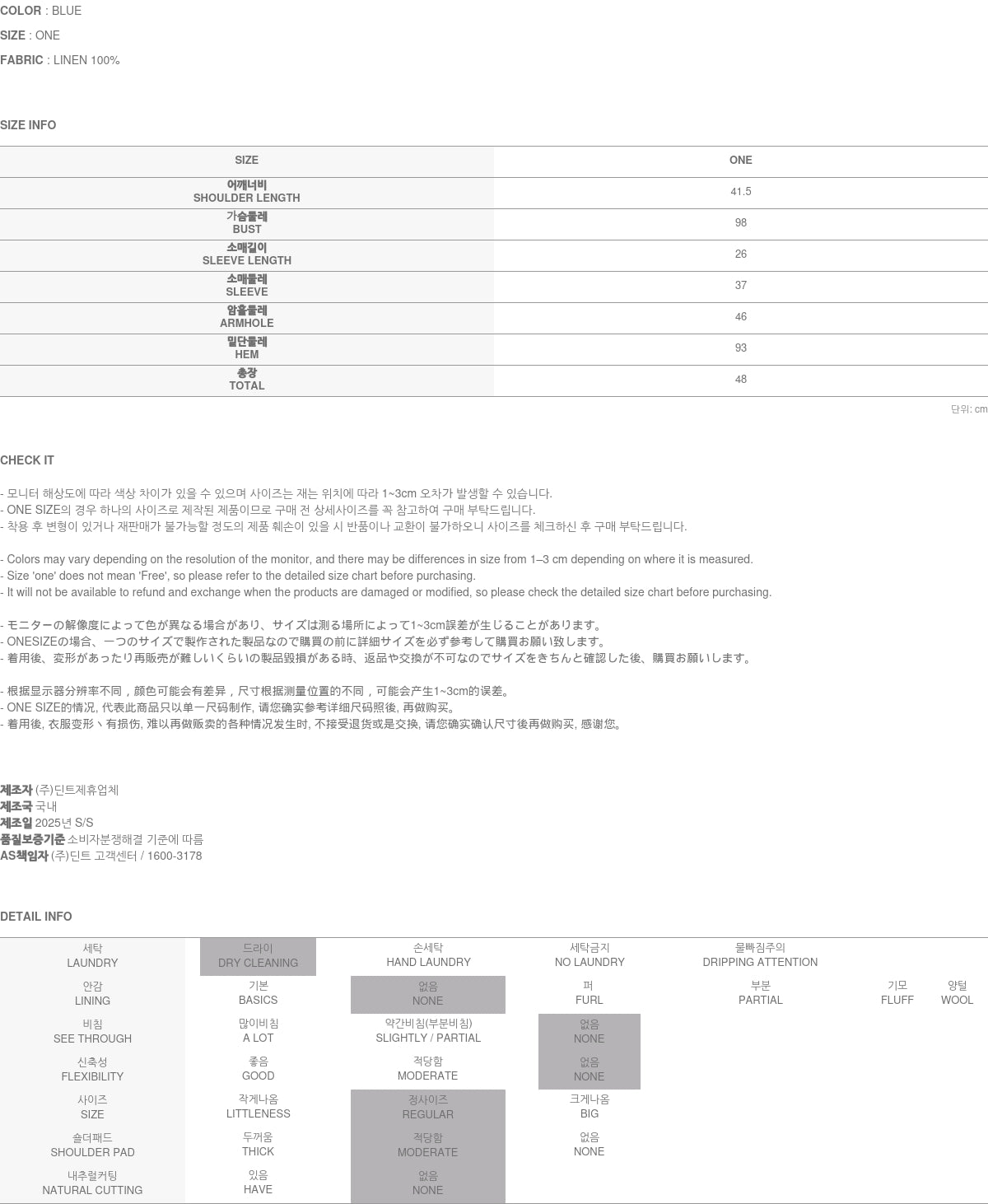 Clothing from DINT Co., Ltd. may become damaged or deformed if machine washed or tumble dried. We strongly recommend following the care instructions provided below.