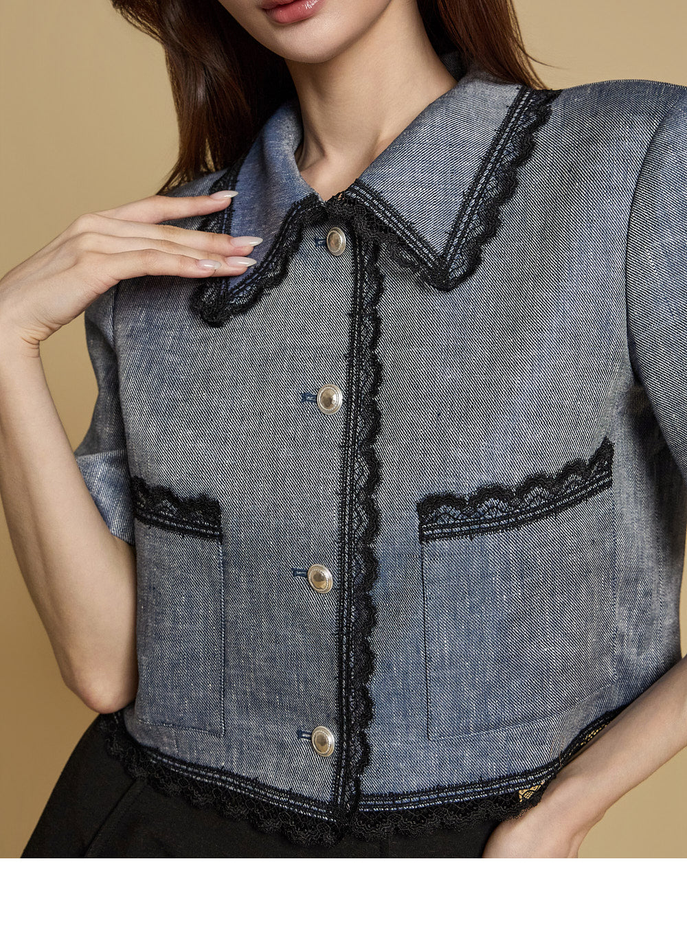 This is a casual, everyday linen denim jacket made from 100% linen,