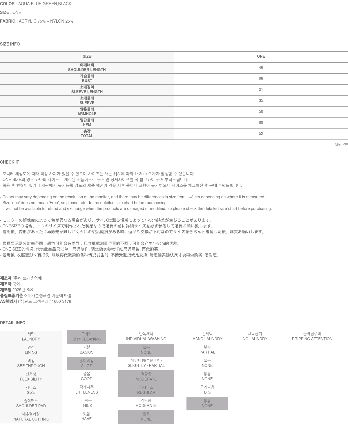 Clothing from DINT Co., Ltd. may become damaged or deformed if machine washed or tumble dried. We strongly recommend following the care instructions provided below.