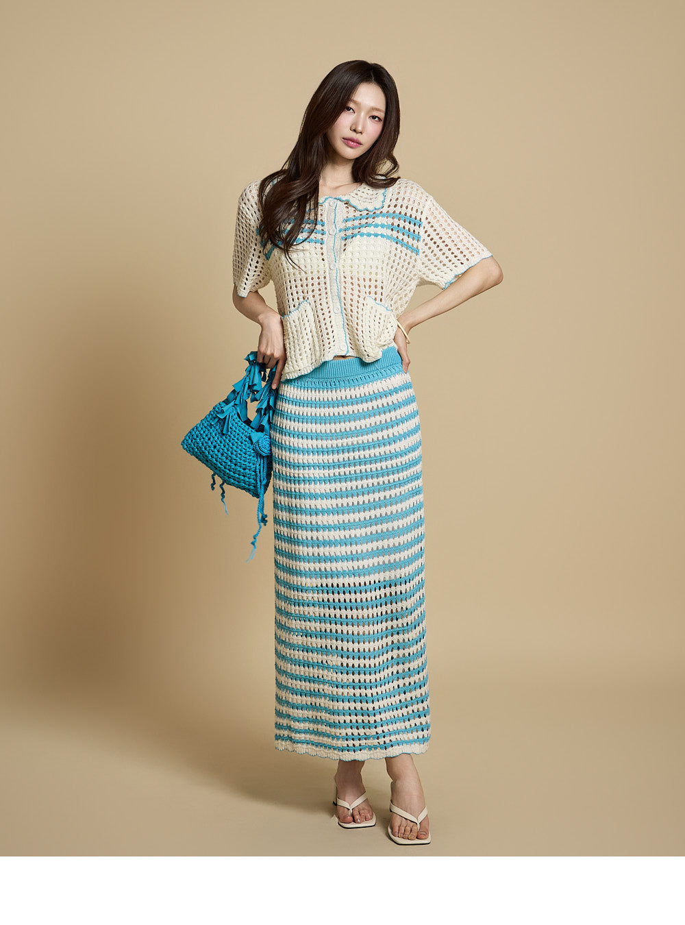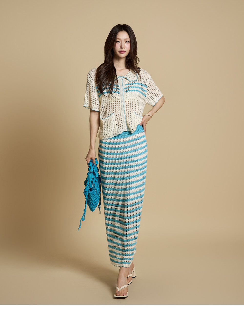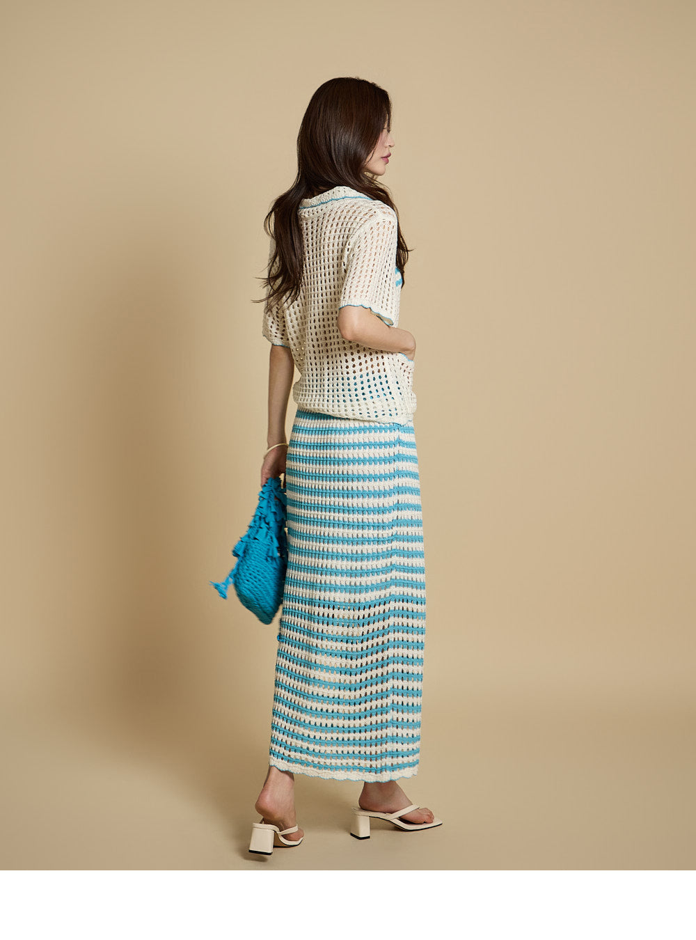 The model is 171CM tall and is wearing ONE size in Aqua Blue.