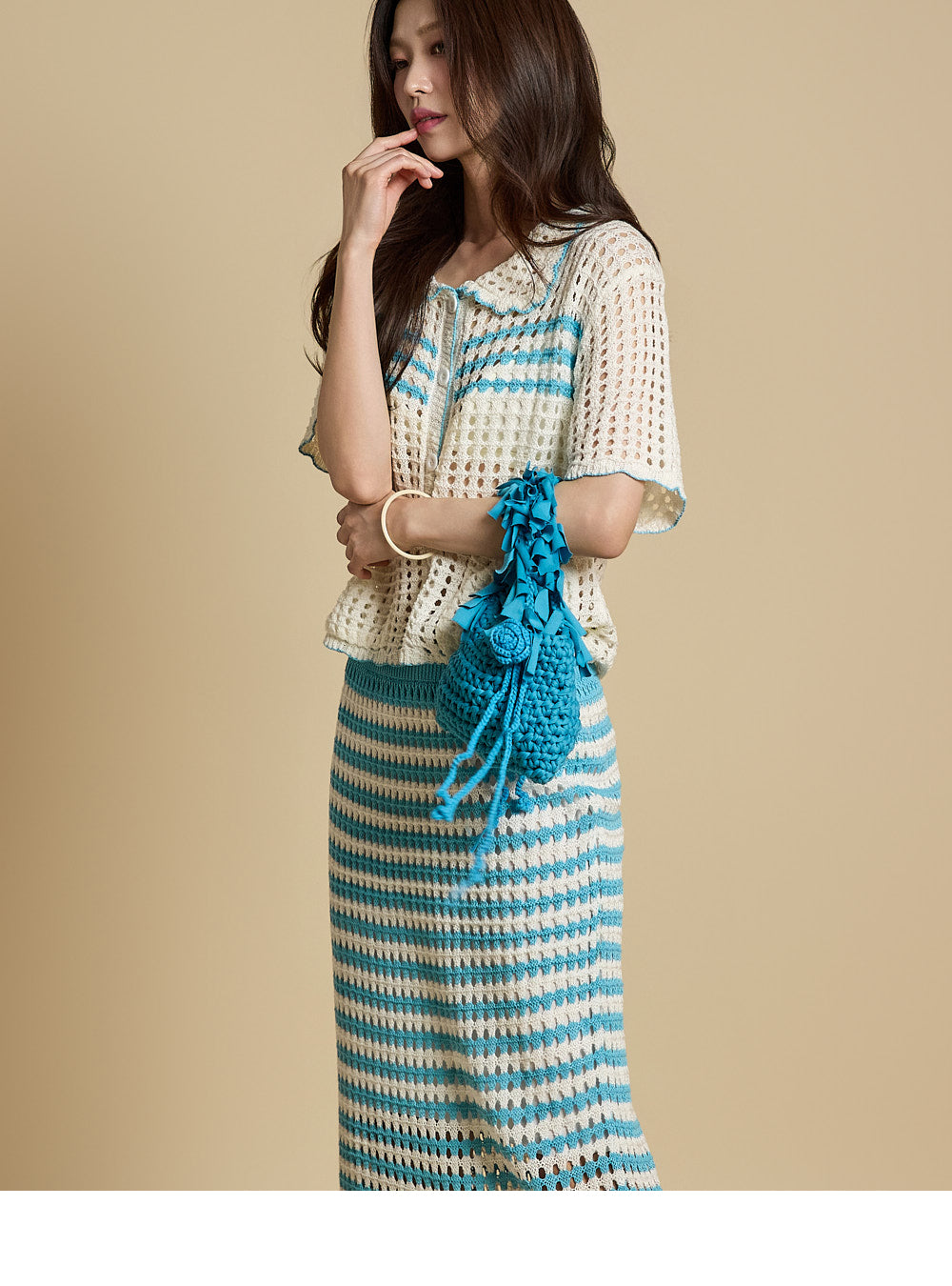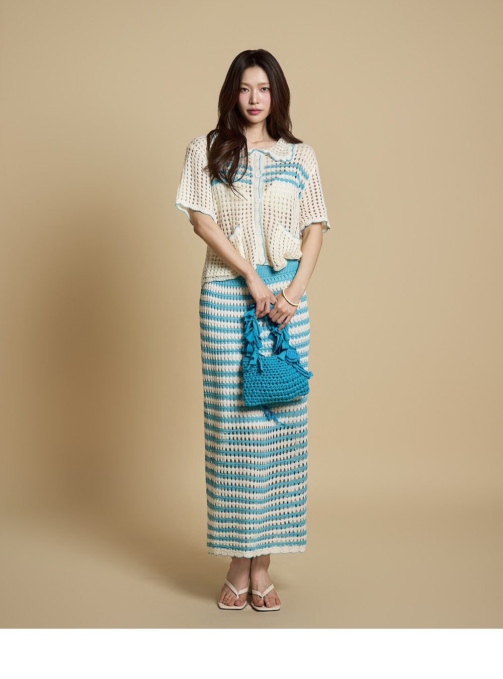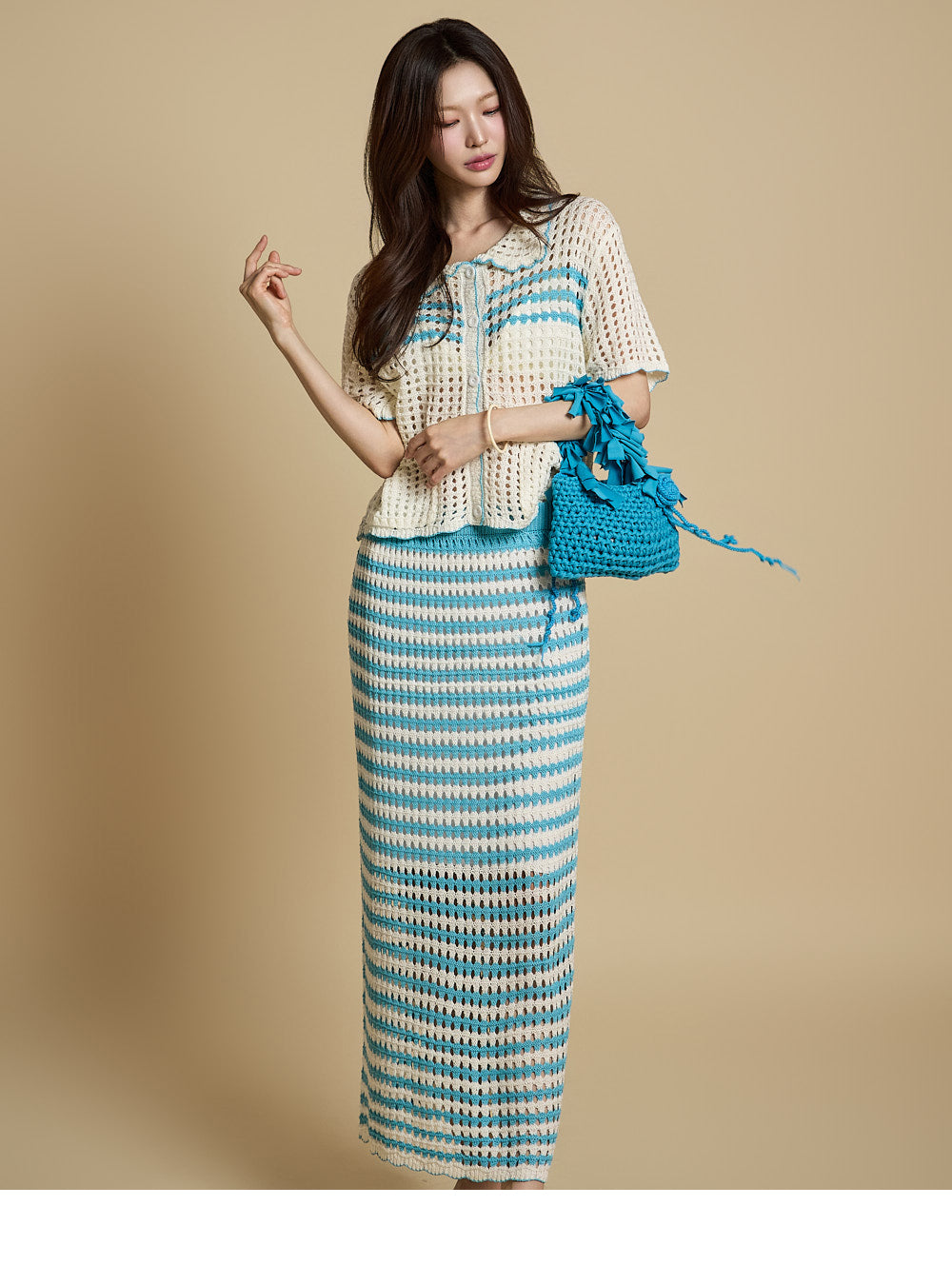 The model is 171CM tall and is wearing ONE size in Aqua Blue.