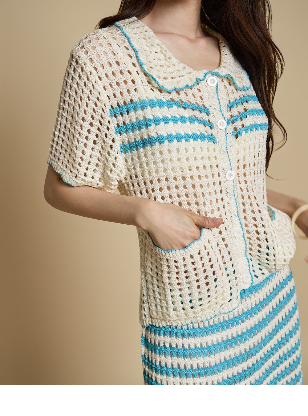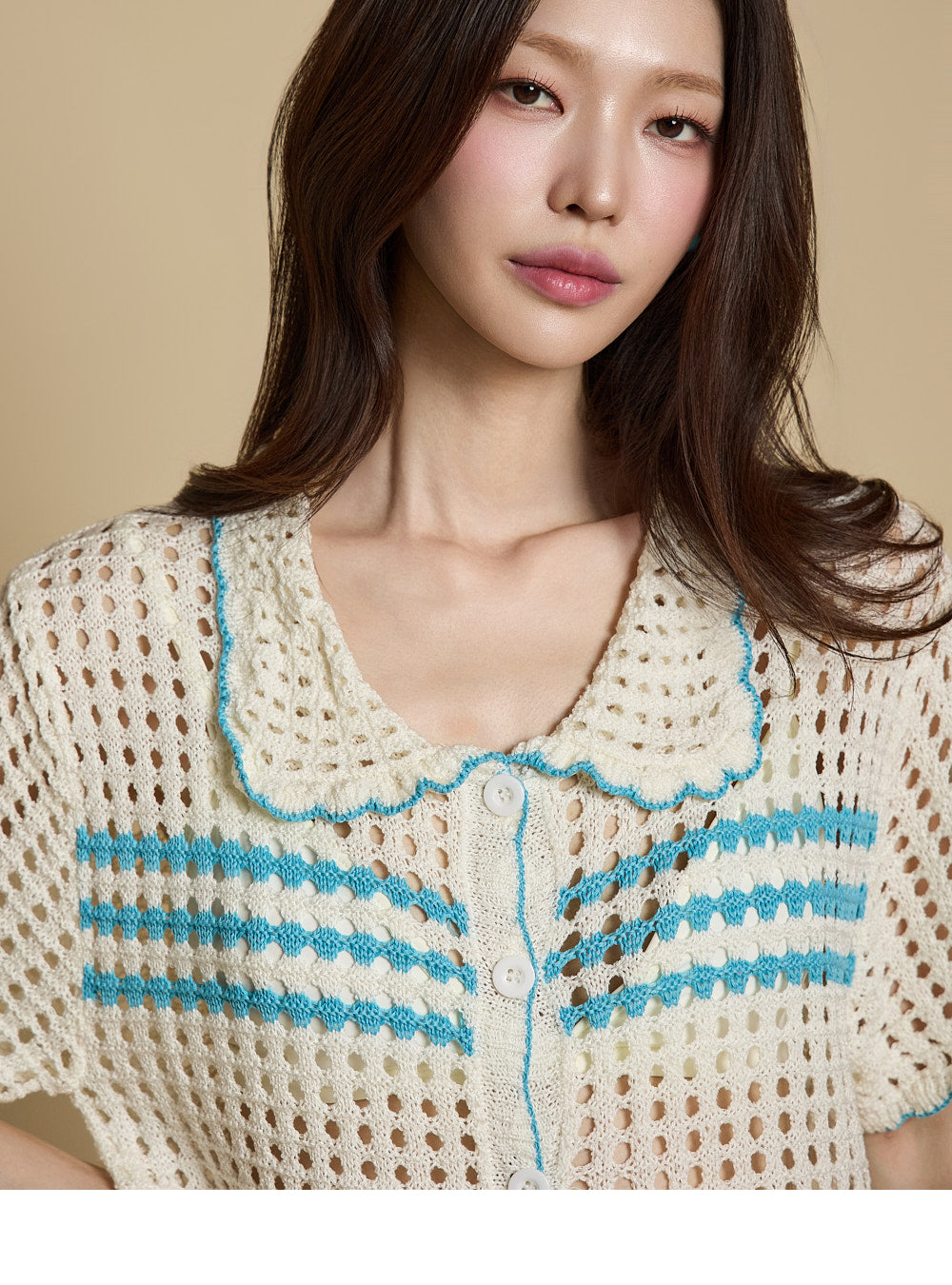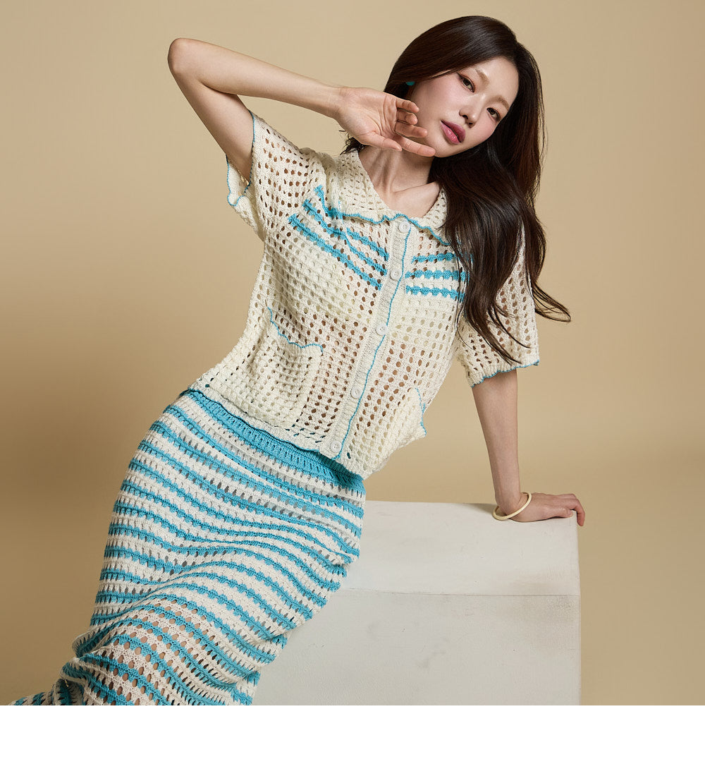 The overall subtle sheerness and punch-knit detailing combine