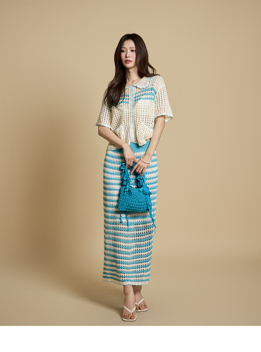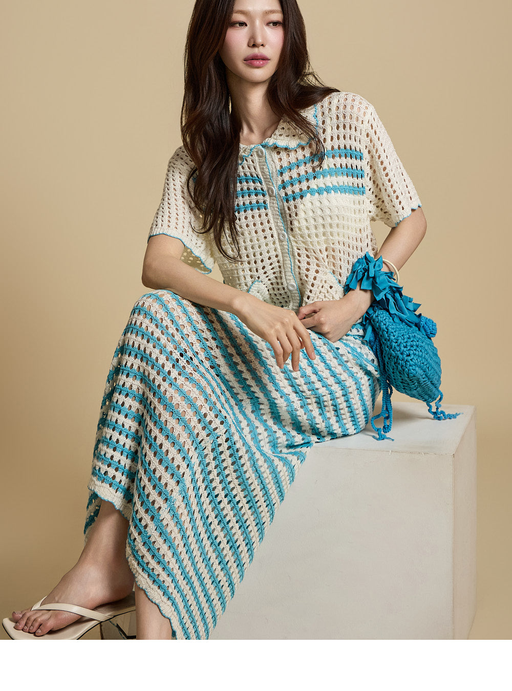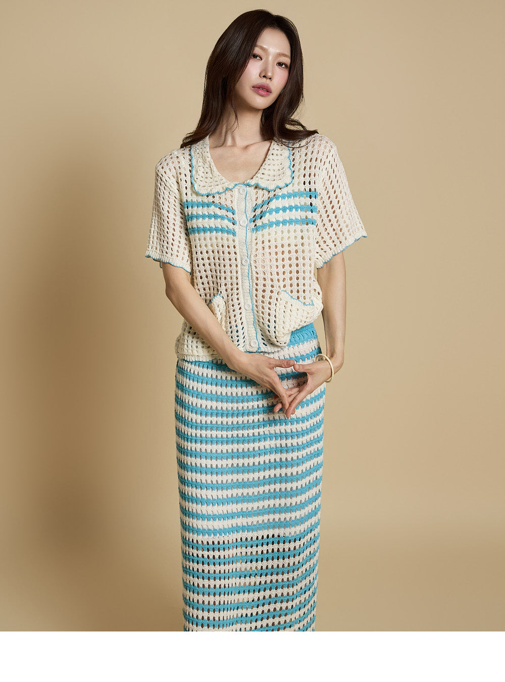 The overall subtle sheerness and punch-knit detailing combine