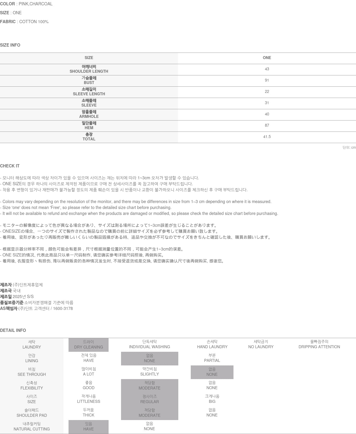 Clothing from DINT Co., Ltd. may become damaged or deformed if machine washed or tumble dried. We strongly recommend following the care instructions provided below.