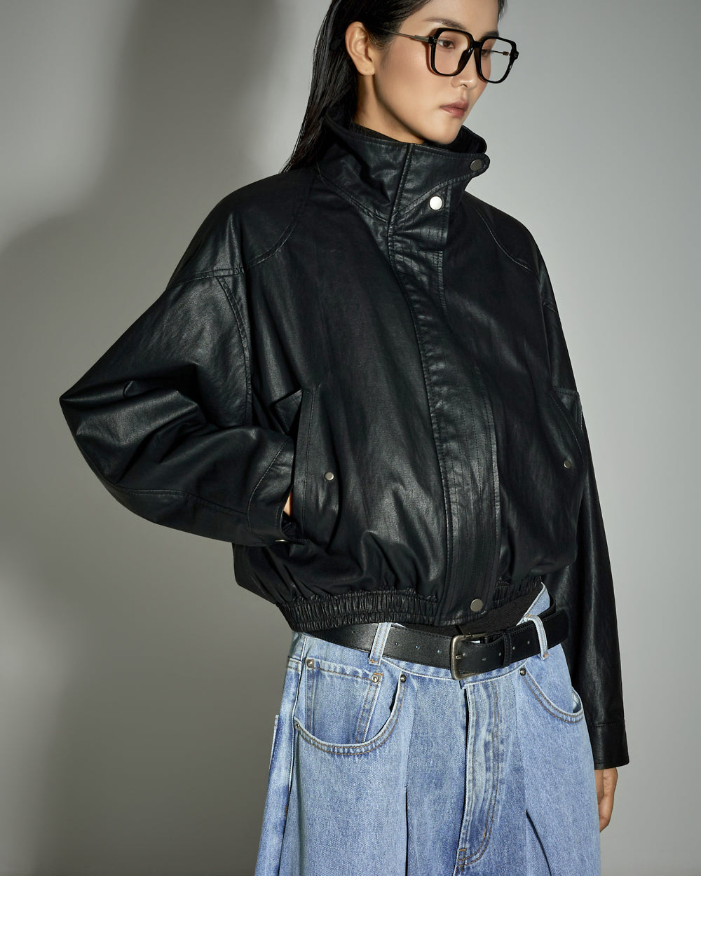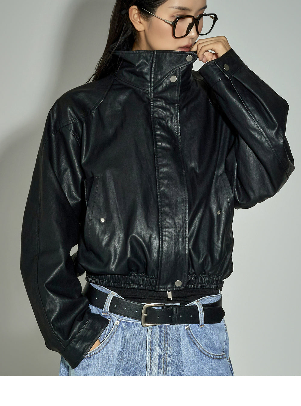 Buttoned cuffs and elastic hem shape the overall silhouette,