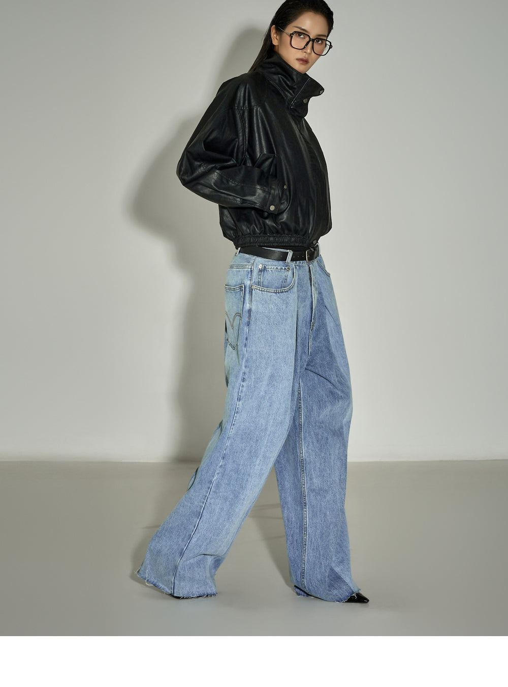 Denim (jeans, coated jeans) and other dark-dyed garments may experience color fading or transfer. Please take extra care before the first wash and while wearing them.