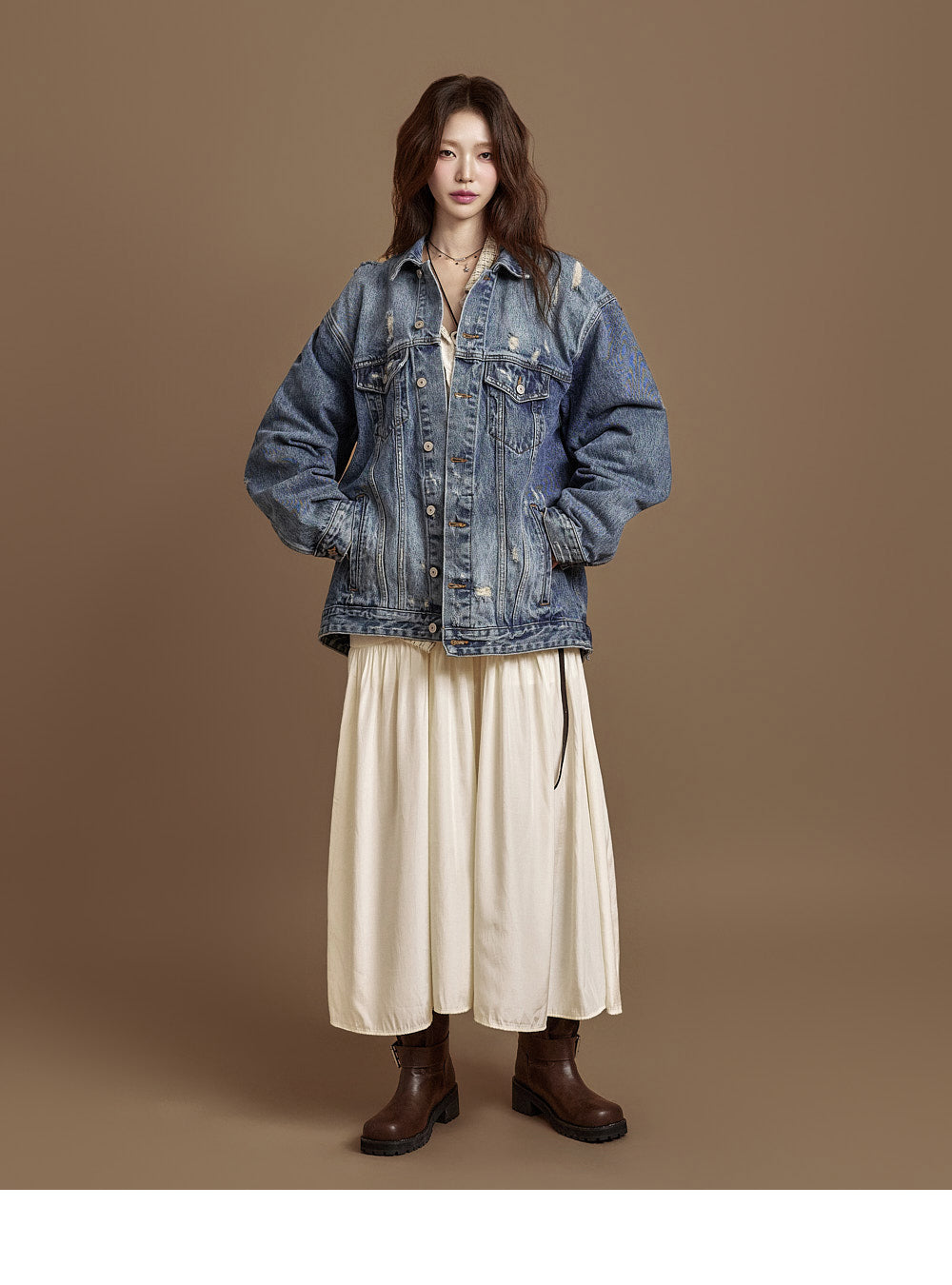 Denim (jeans, coated jeans) and other dark-dyed garments may experience color fading or transfer. Please take extra care before the first wash and while wearing them.