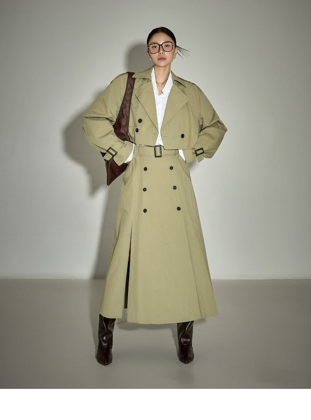 This cropped trench coat has a casual vibe.