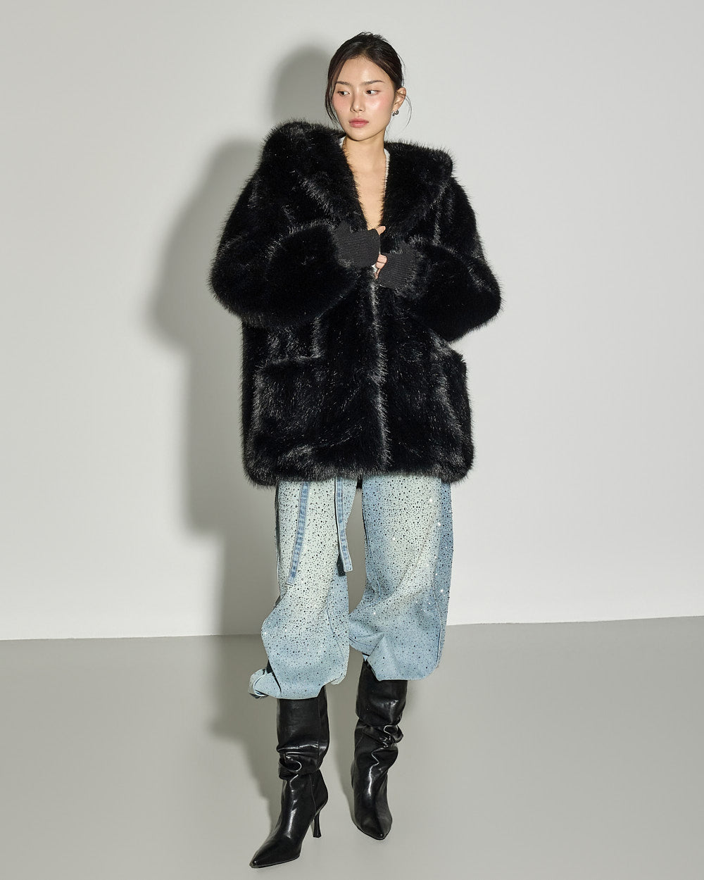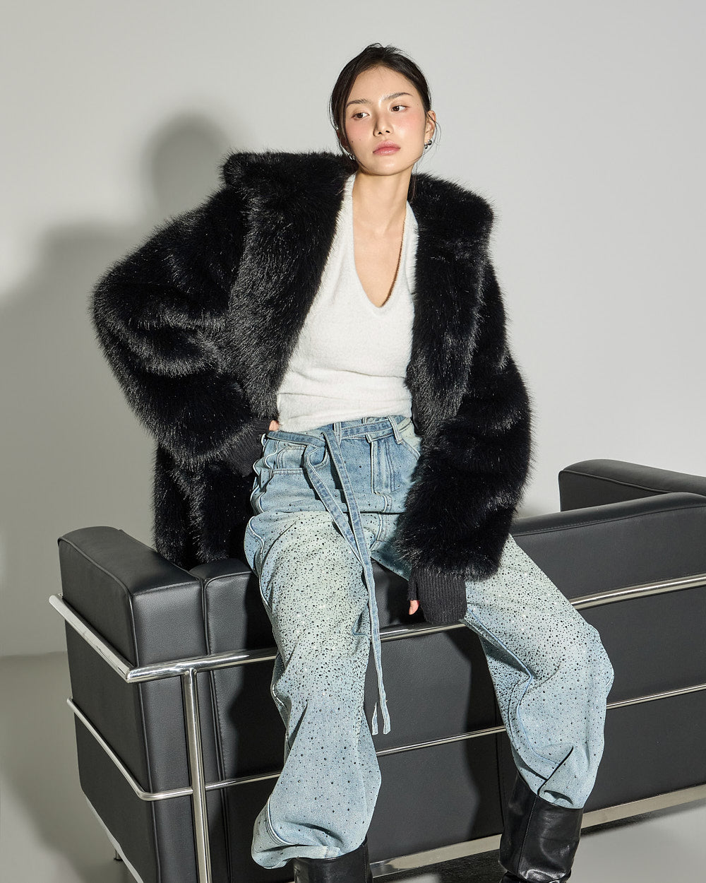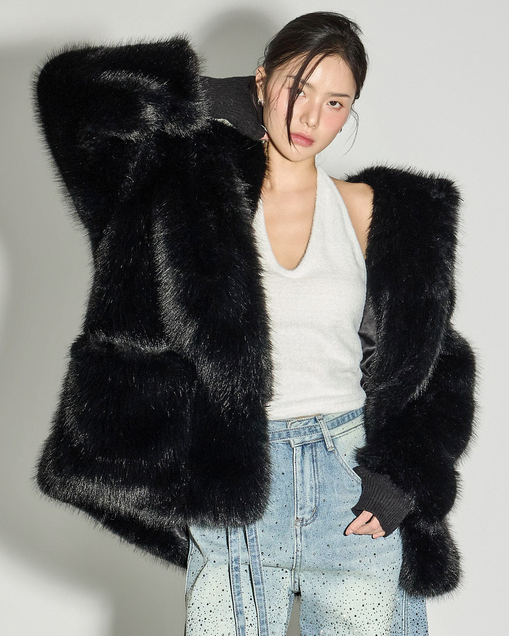 This statement fur outerwear piece can be styled in a variety of ways, from everyday winter looks