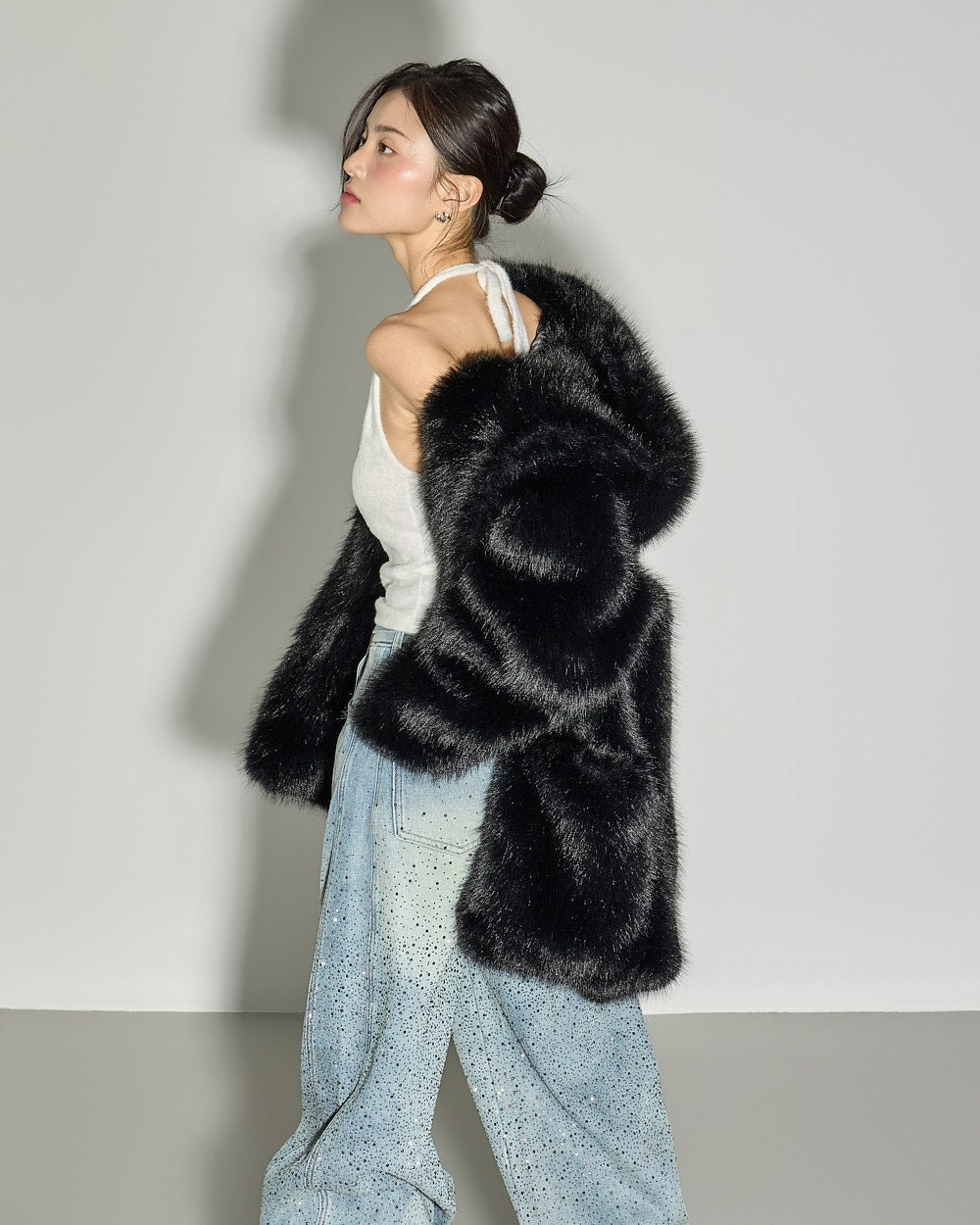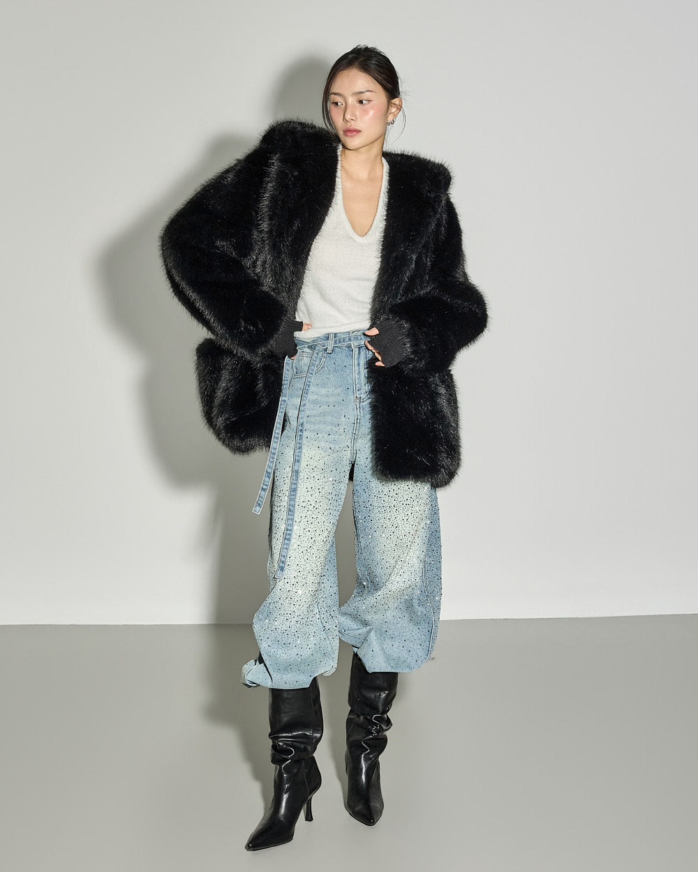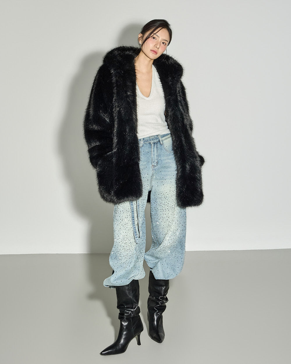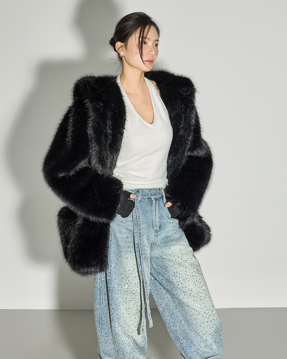 This statement fur outerwear piece can be styled in a variety of ways, from everyday winter looks