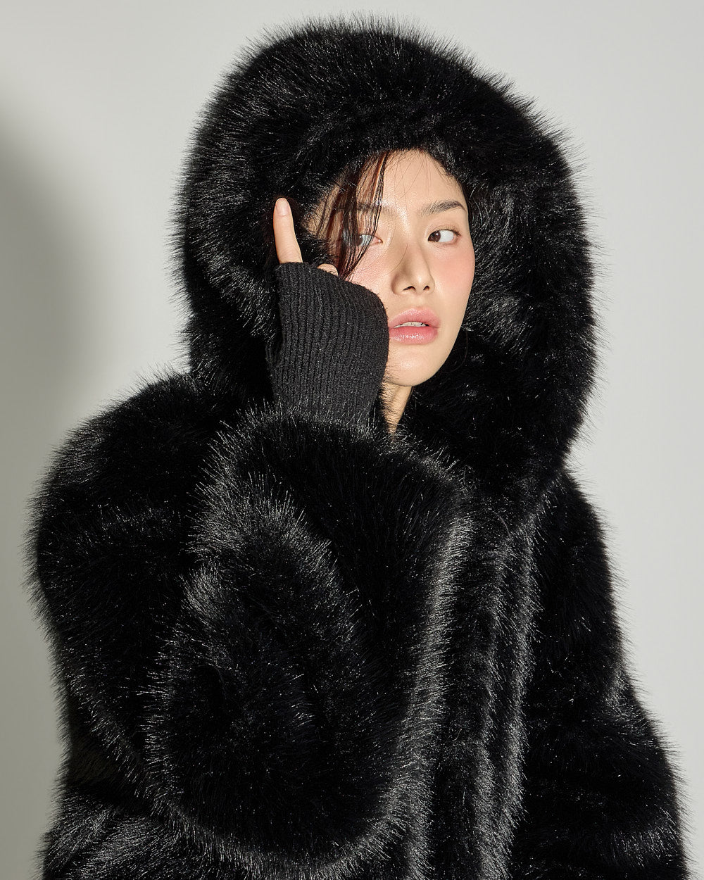 This glam fur hooded jumper exudes a unique style.