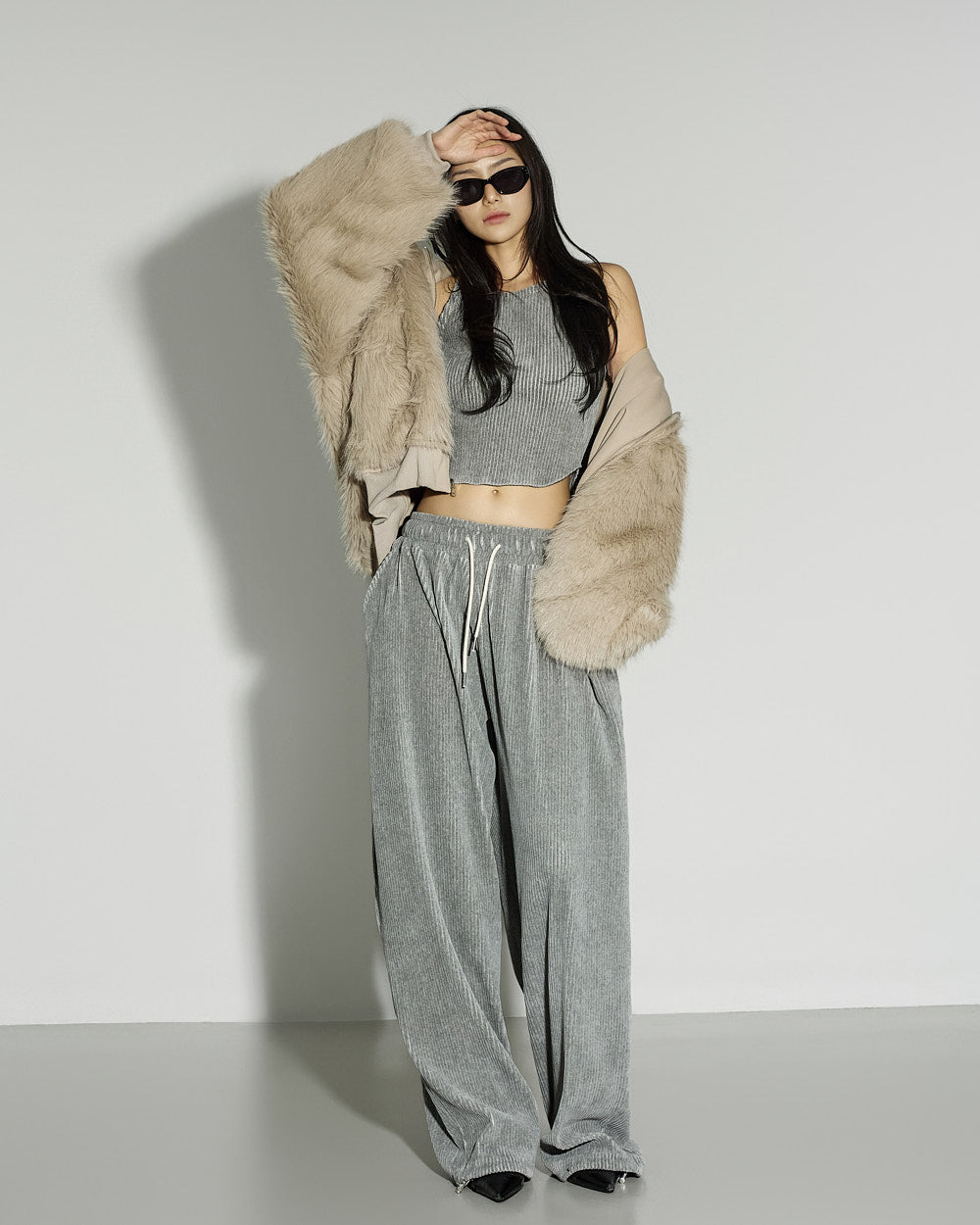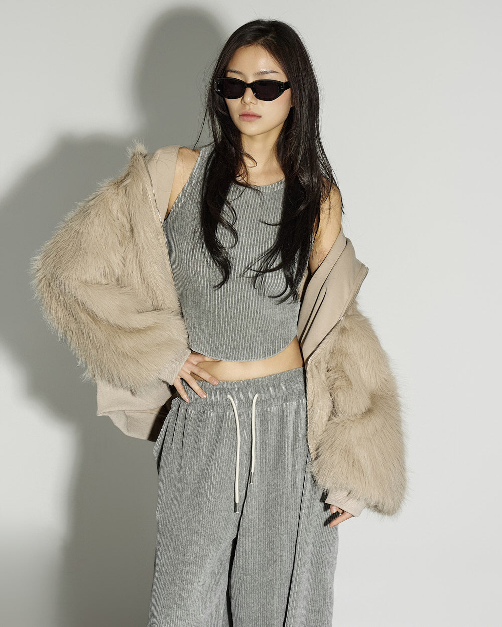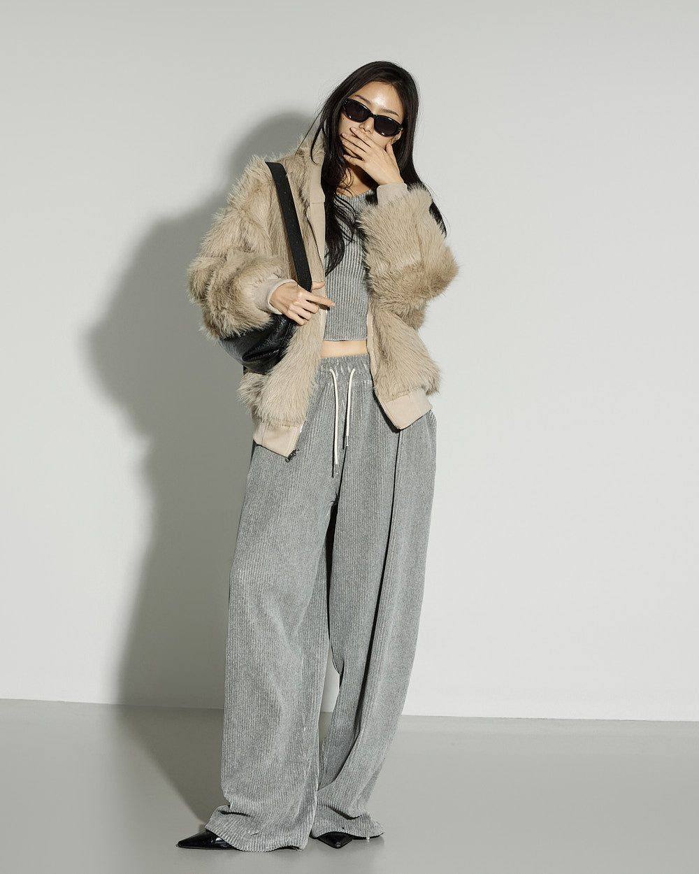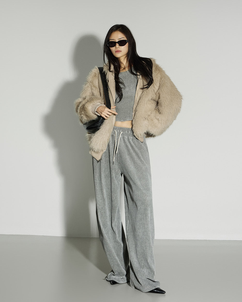 and the oversized silhouette creates a natural volume.