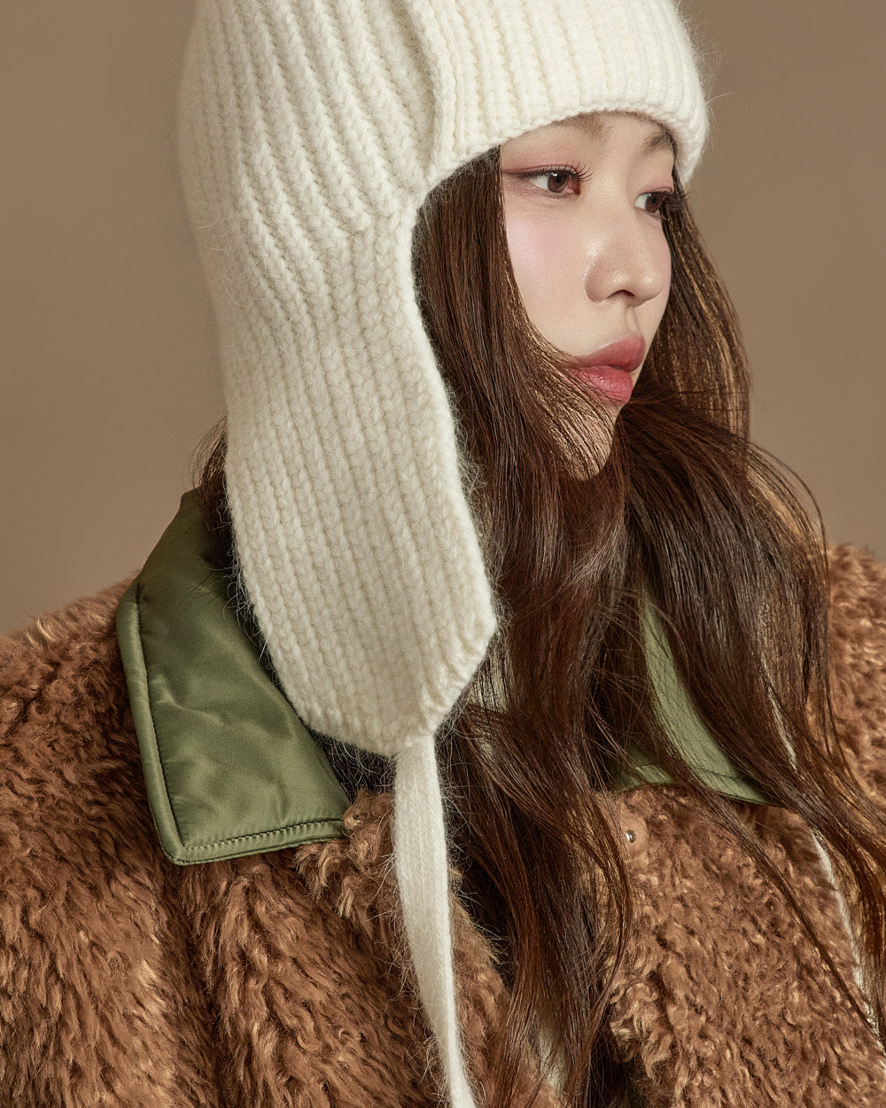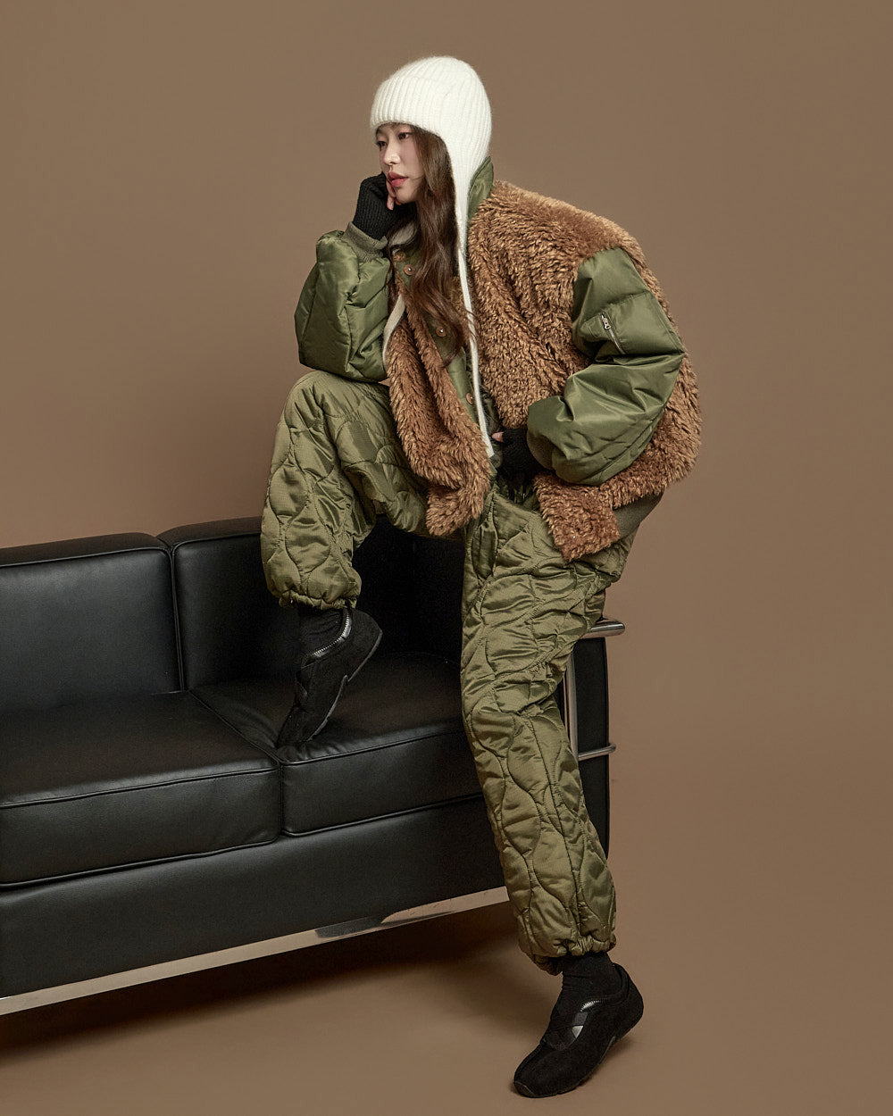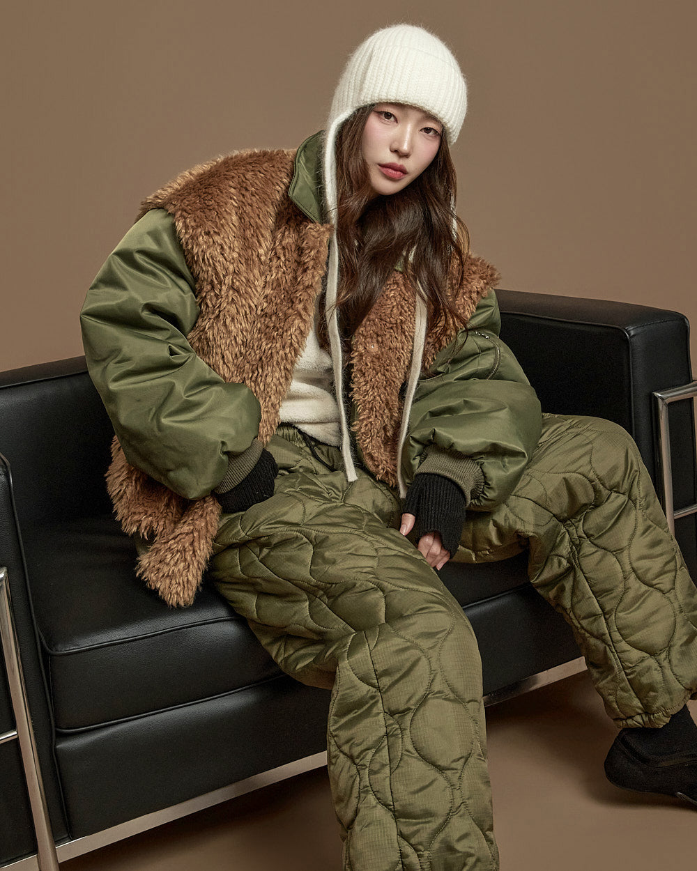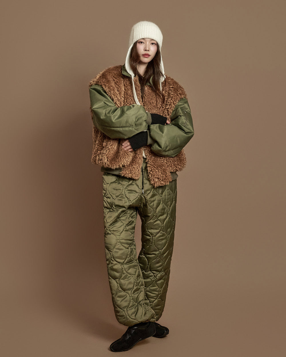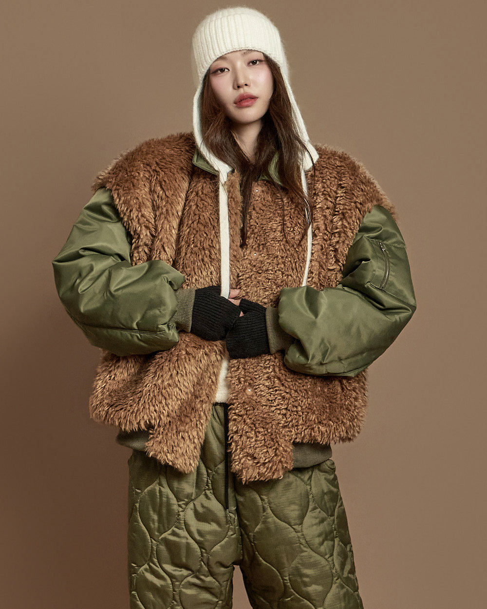 The 171cm model is wearing size ONE, color KHAKI.