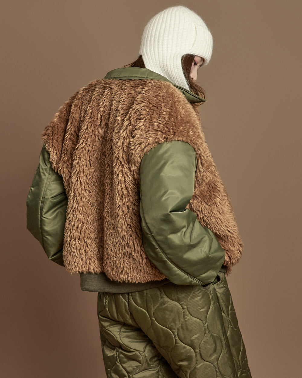This fluffy flight jacket has a casual vibe.