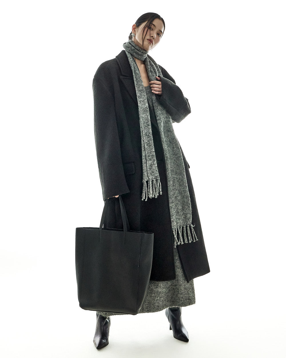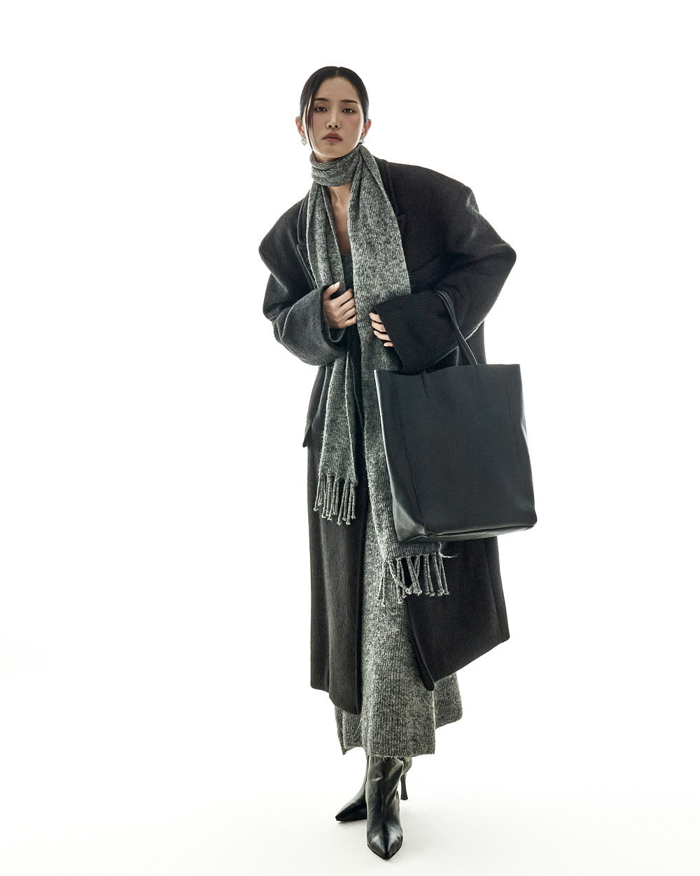 The oversized silhouette, with its tailored collar and shoulder pads,