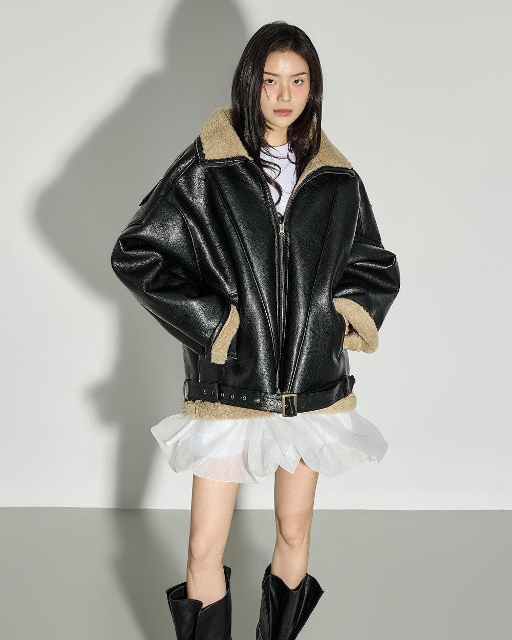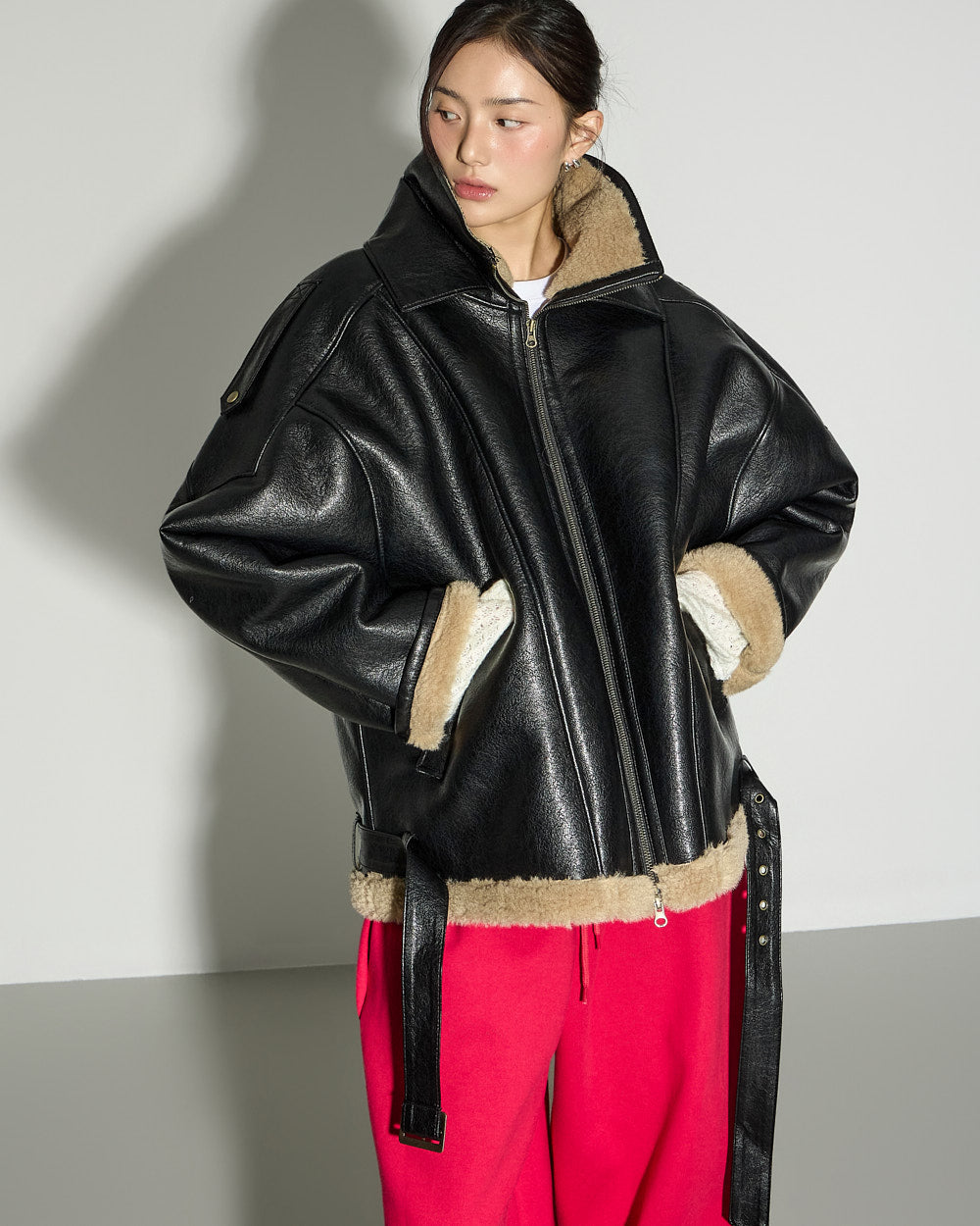 J3051 Leather Shearling Jacket
