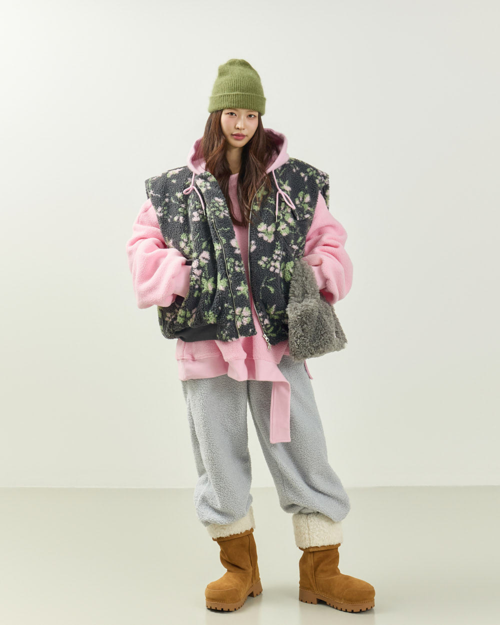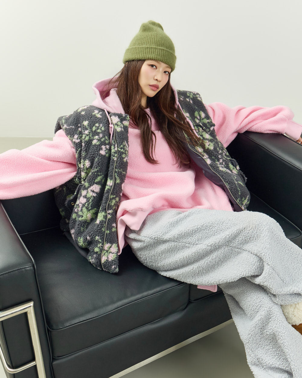 Featuring a cozy boucle material,