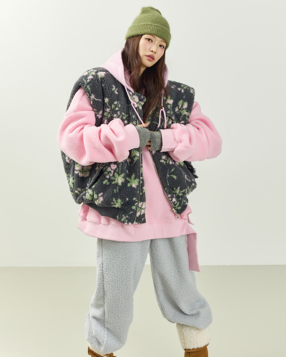 The oversized silhouette allows for effortless layering over a variety of innerwear,