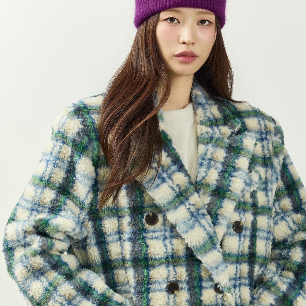 With a design that combines boucle texture and check pattern,