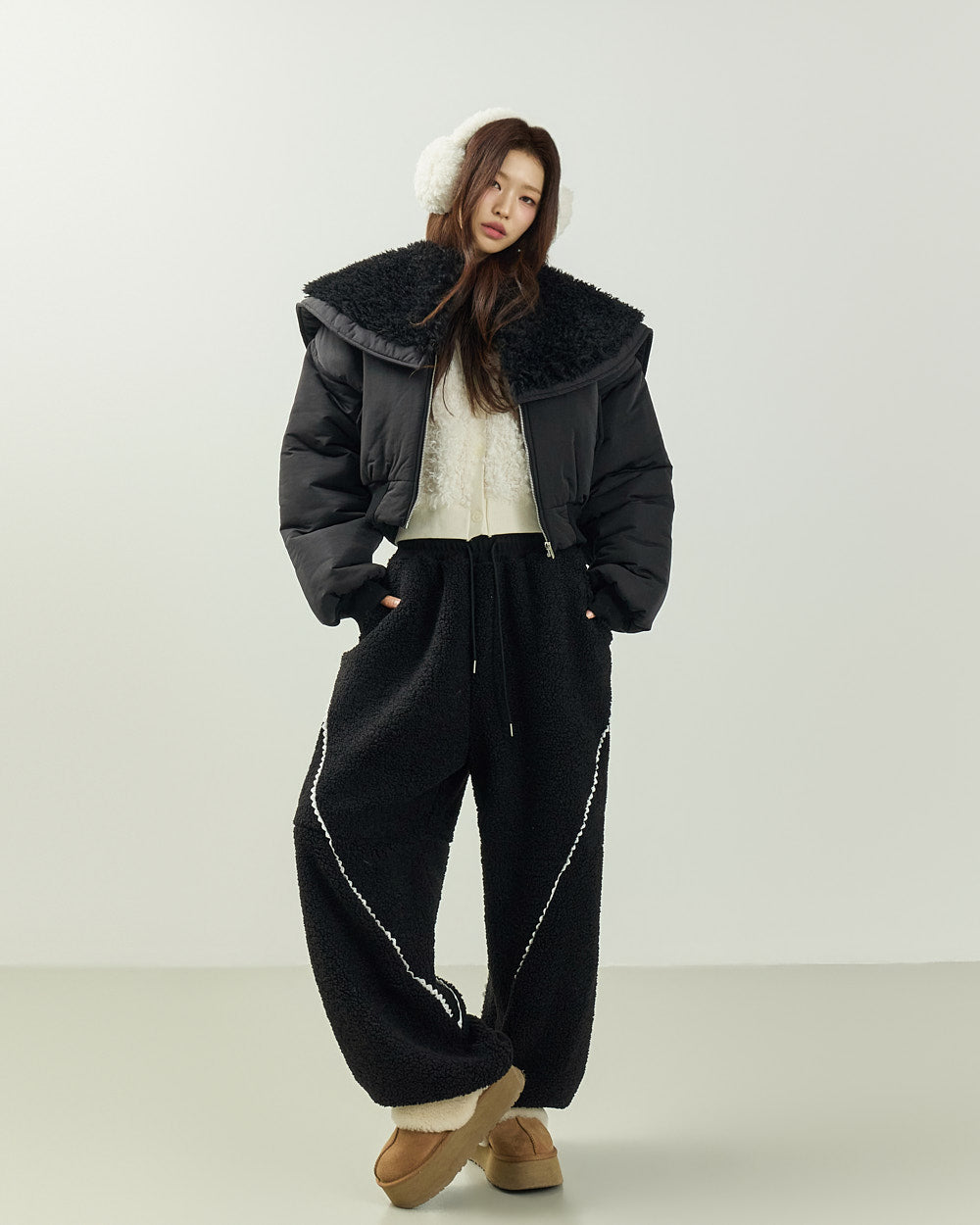 This wide-collar padded jumper exudes a casual vibe.