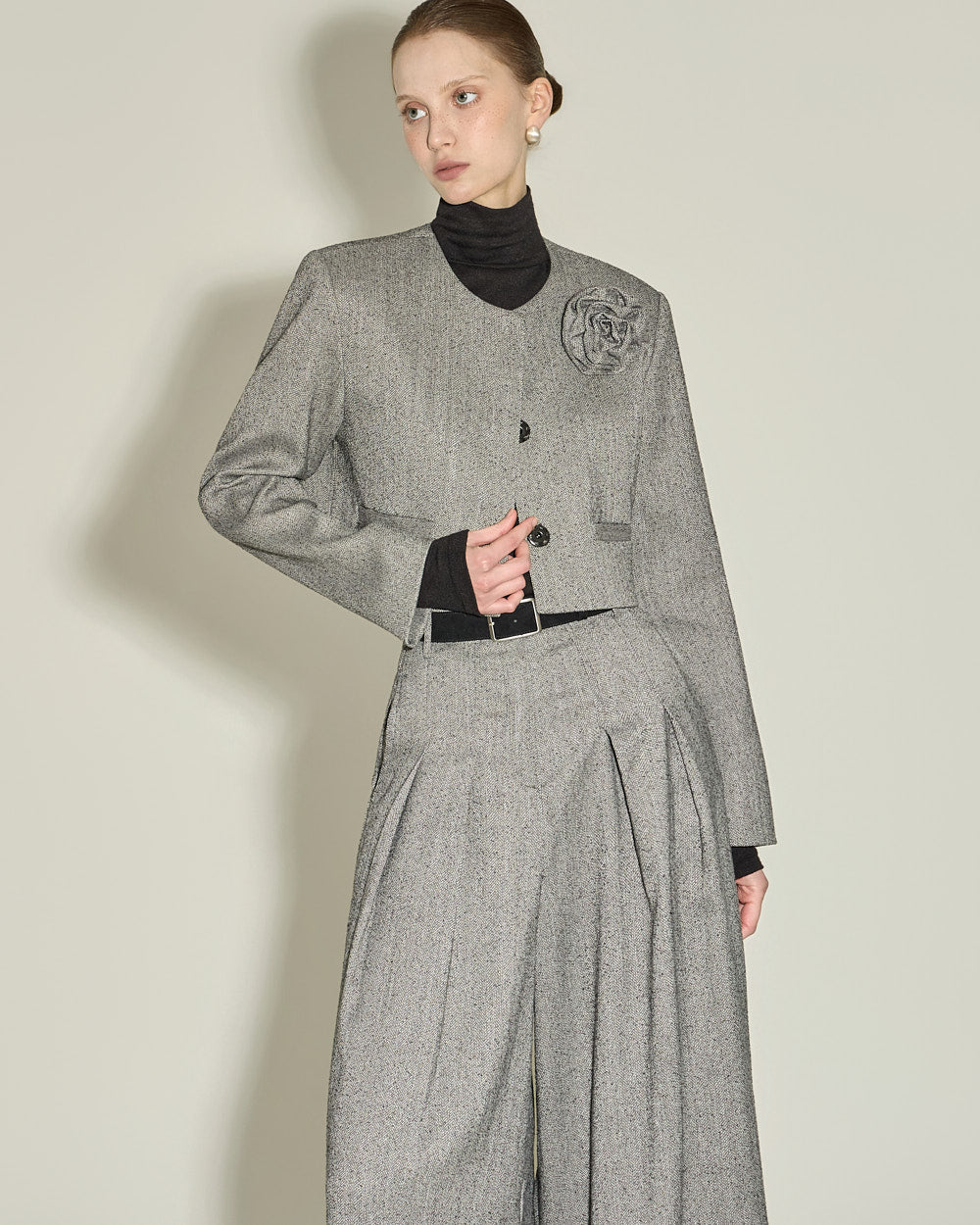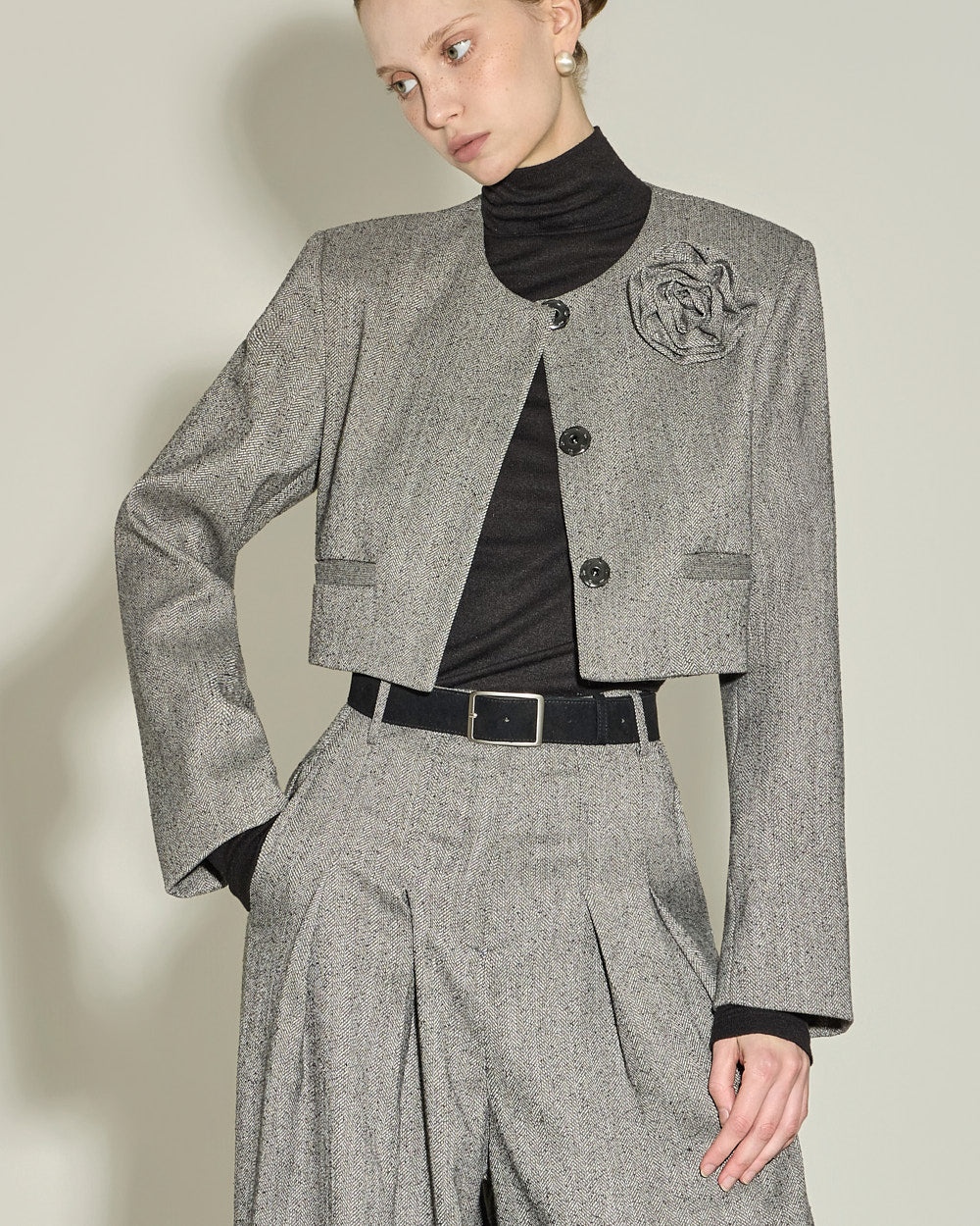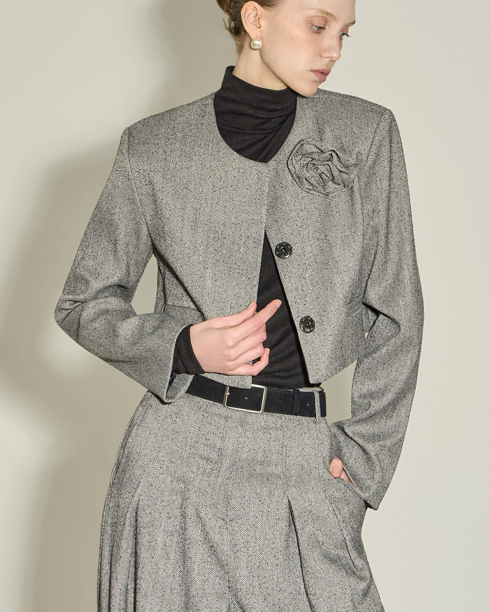 This corsage set jacket exudes a classic feminine vibe.