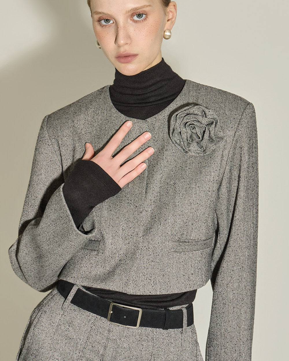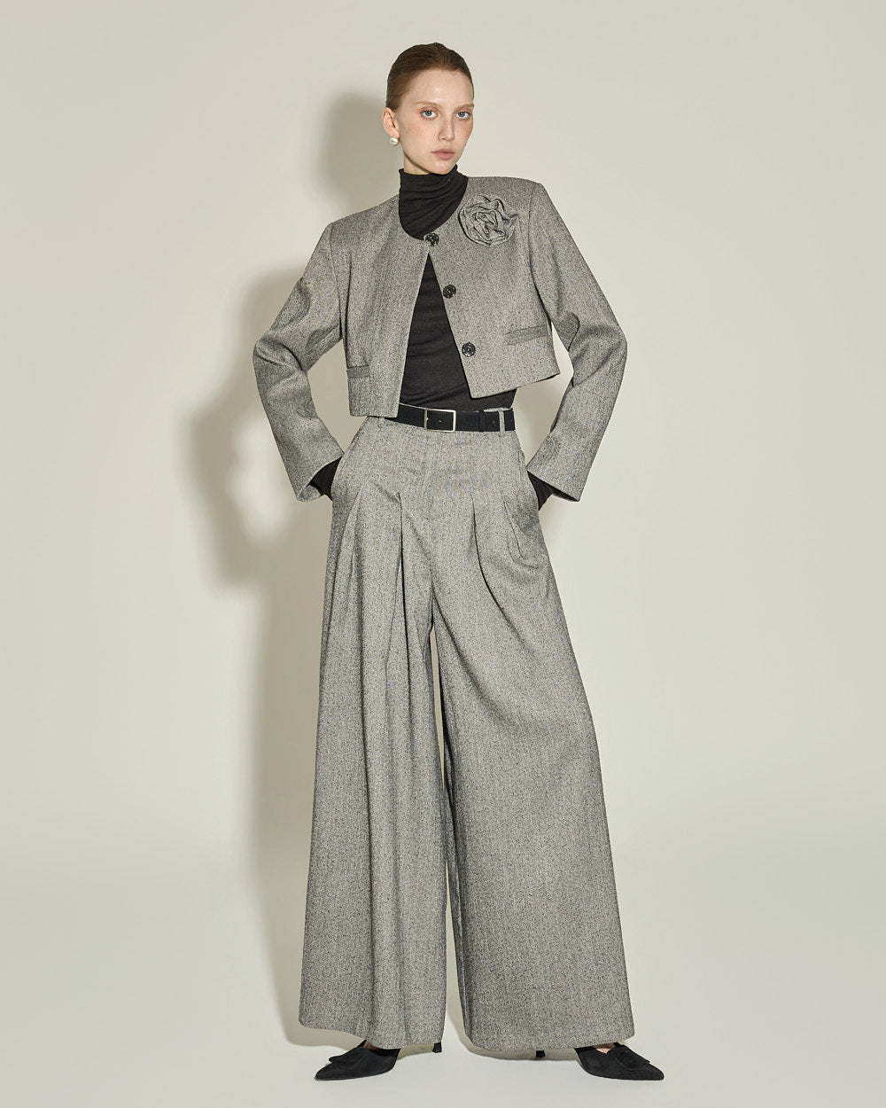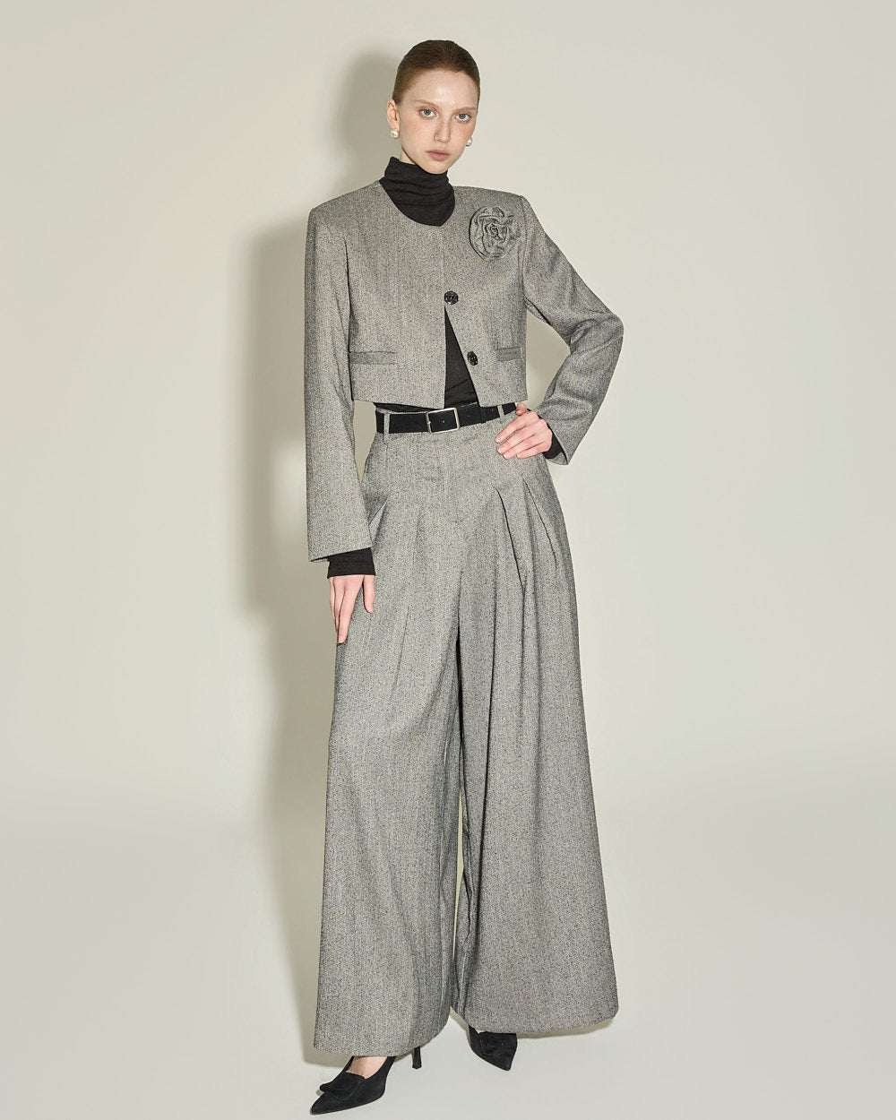 This corsage set jacket exudes a classic feminine vibe.