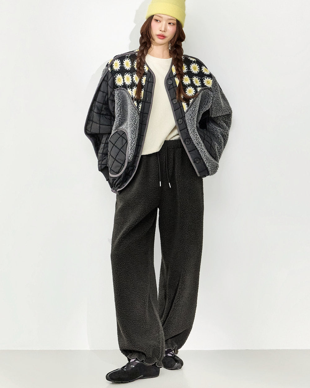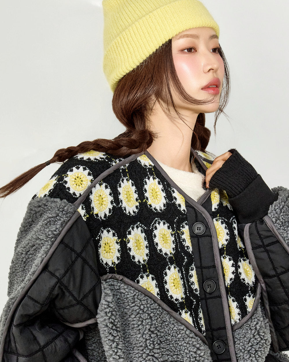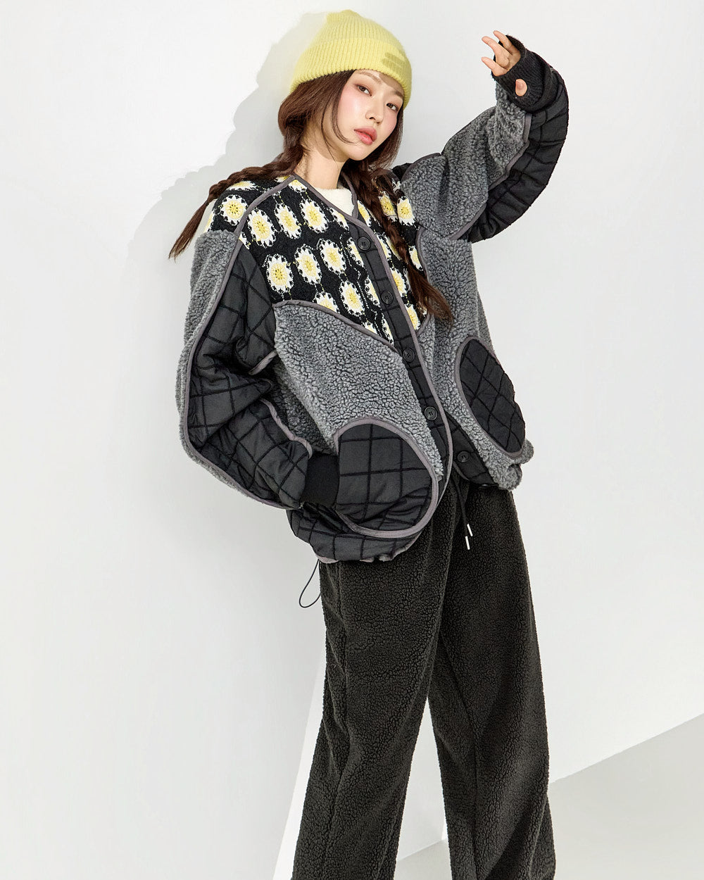 The design combines quilting and fleece,