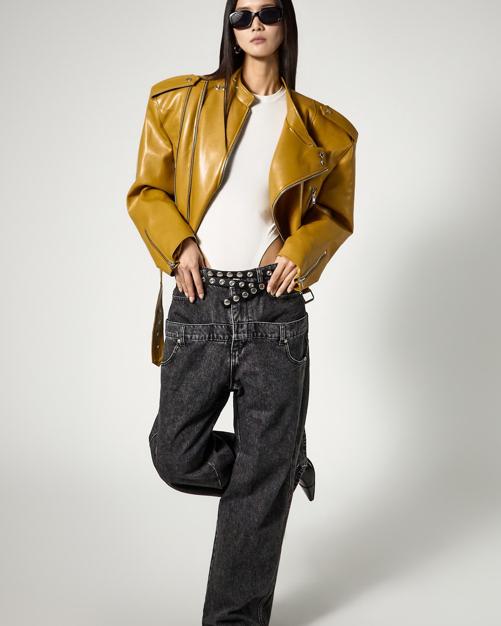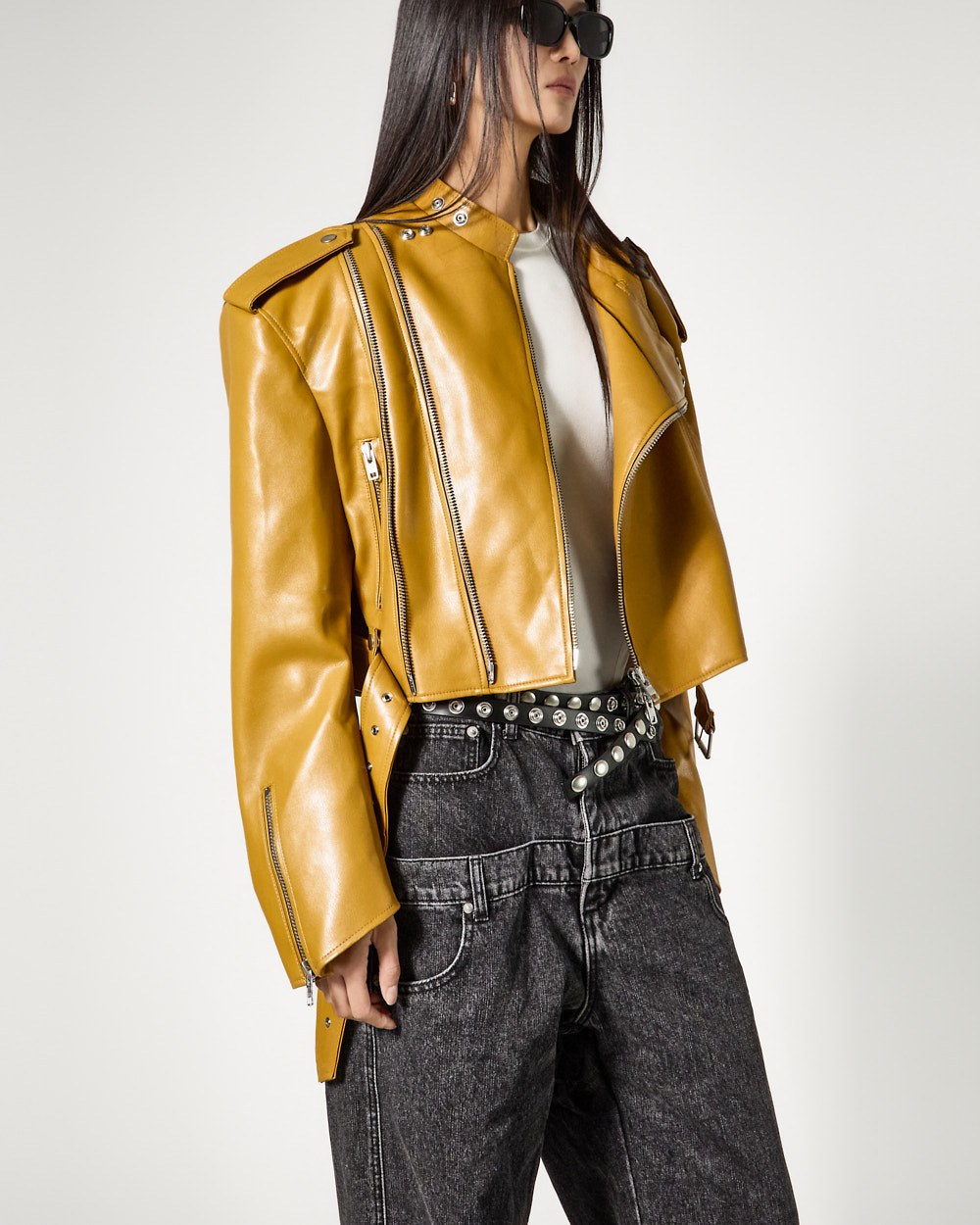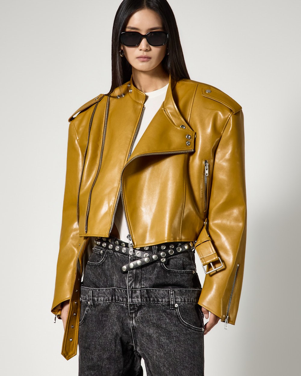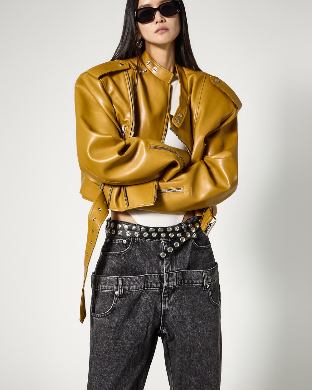 and the 2-way zipper and sleeve zipper details allow for versatile styling.