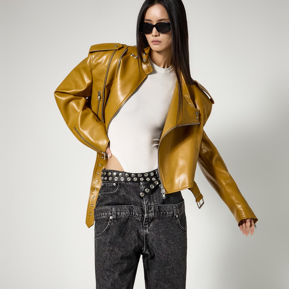 A 173cm model is wearing Size ONE in the MUSTARD color.